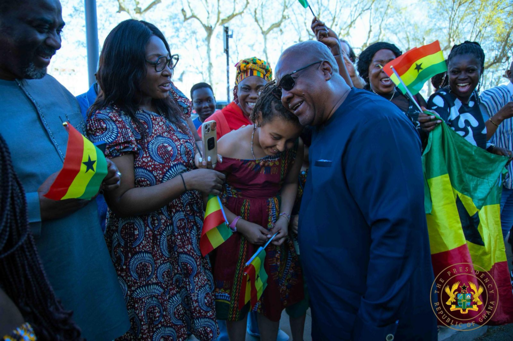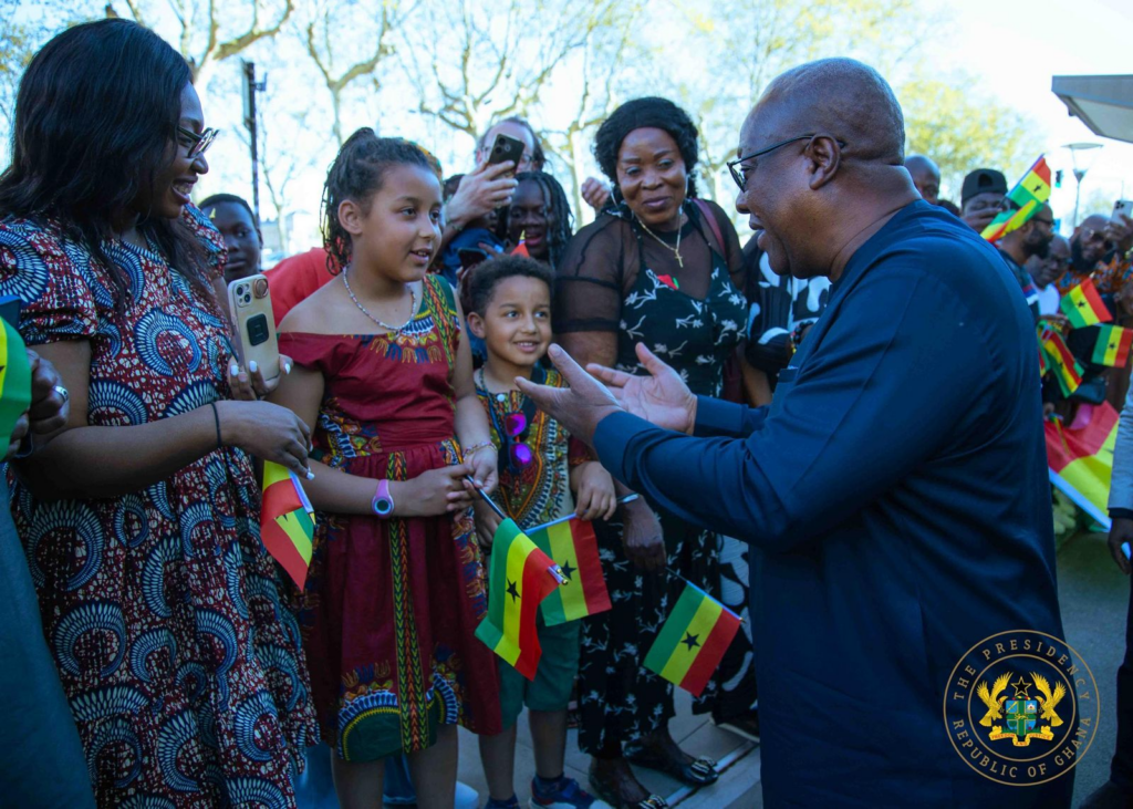 Upon arrival, President Mahama was warmly received by members of the Ghanaian community in Lyon. A number of families gathered to welcome him, expressing excitement at the opportunity to meet him on Easter Monday.