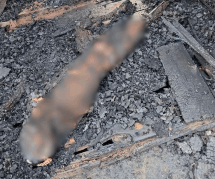 His charred body was discovered after firefighters and police responded to a distress call from residents around 0700 hours.