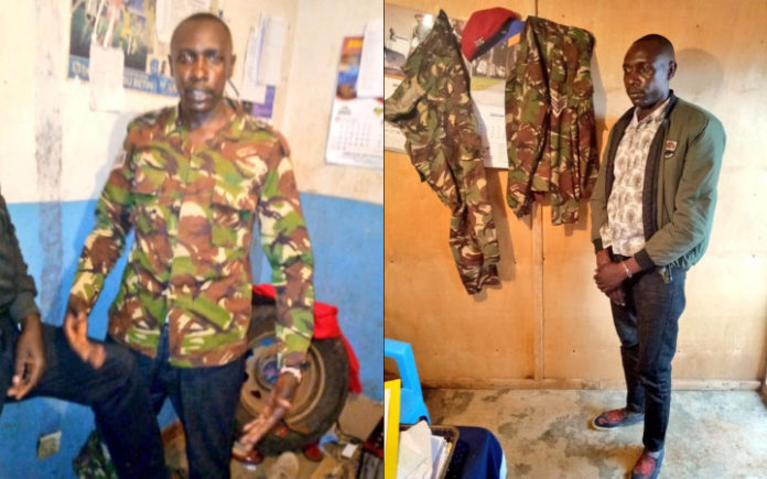 A Kenya Defense Force (KDF) impersonator who stormed a Police Station while dressed in a jungle jacket of a Military Police Sergeant and assaulted a policewoman has been arrested.