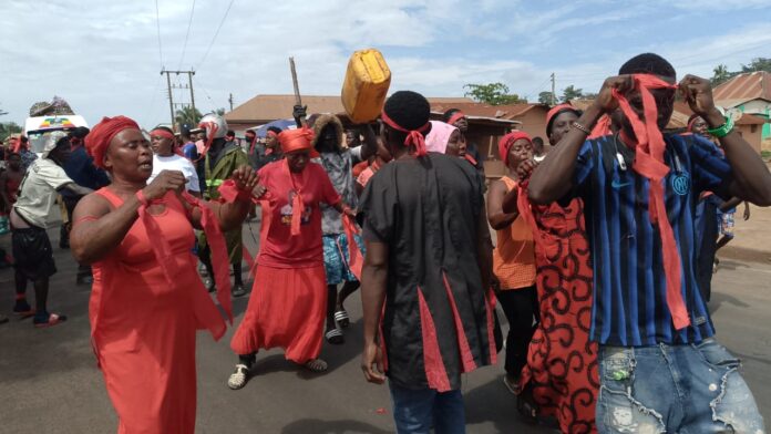 The demonstrators marched from the Nyankomase community to present their petition to the District Chief executive of Amansie South to forward it to the President.