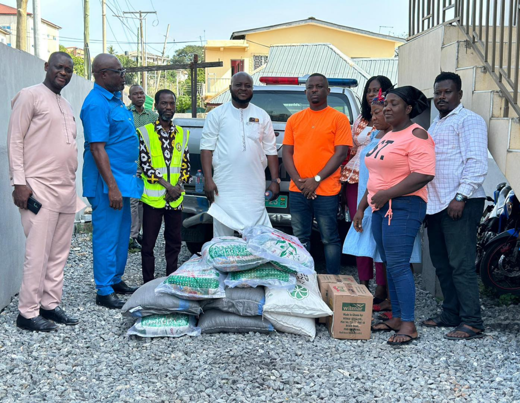 On behalf of the National Disaster Management Organisation (NADMO) and the Ayawaso Central Municipal Disaster Management Committee, the delegation presented a cash donation and assorted food items to support the funeral arrangements of the deceased.