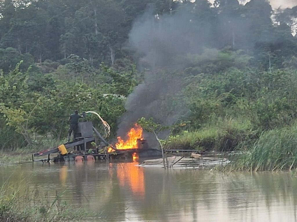 When the taskforce arrived, several miners reportedly fled the scene, abandoning equipment and makeshift structures used for the illegal mining operations.