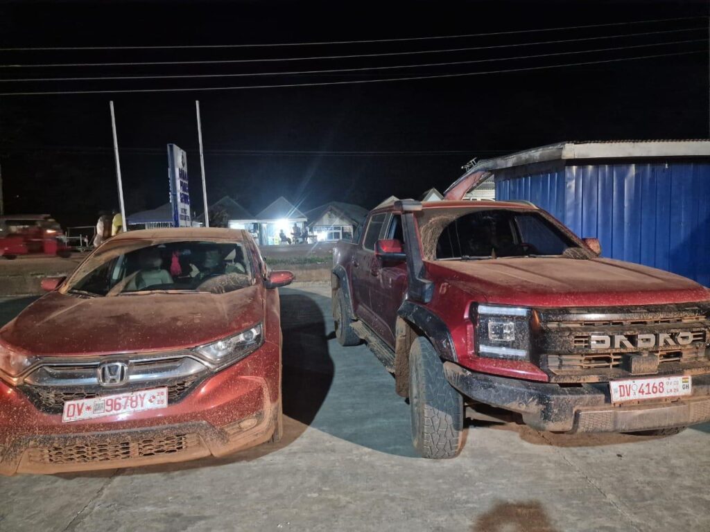 From the site, officers seized a wine-coloured Honda CRV with registration number DV 9678Y-2025, allegedly belonging to Abayie, as well as a wine-coloured JMC pickup with registration number DV 4168-2026, driven by Abraham.
