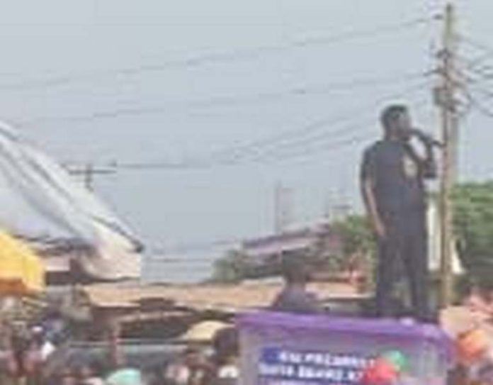 At Ashaiman on Saturday, June 29, 2024, Nana Kwame Bediako’s convoy was halted for several minutes by scores of young people who eagerly requested his T-shirts.