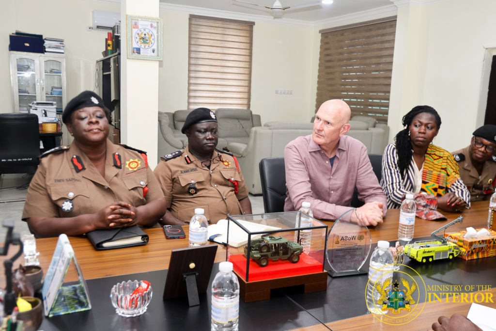 Johan Tuitert paid a courtesy call on the Minister for the Interior, Muntaka Mohammed-Mubarak, accompanied by Ghana’s Chief Fire Officer, Mawusi Ntow Sarpong.