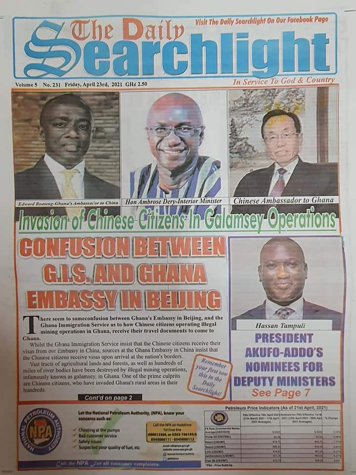 Newspaper Headlines: Friday, April 23, 2021 Newspaper Headlines April 23, 2021 7:59 am - Audio By Carbonatix FacebookWhatsAppTwitterTelegramEmailPinterestPrint Previous article16 ‘galamsey’ excavators seized at Amenfi West in Western RegionNext articleUEW student found dead at Winneba beach RELATED ARTICLES Newspaper Headlines Newspaper headlines: Monday, November 24, 2025 Newspaper Headlines Newspaper headlines: Friday, November 21, 2025 Newspaper Headlines Newspaper headlines: Thursday, November 20, 2025