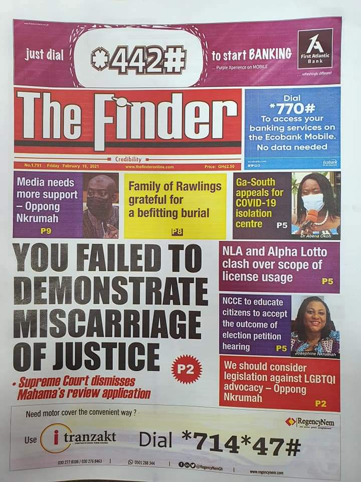 Newspaper Headlines: Friday, February 19, 2021 News February 19, 2021 7:54 am - Audio By Carbonatix FacebookWhatsAppTwitterTelegramEmailPinterestPrint Previous articleElection petition: Seven times Mahama’s lawyers lostNext articleEuropa League: Fernandes strikes twice as Man United rout Real Sociedad RELATED ARTICLES News Ghanaian among 20 arrested as 306 stolen vehicles recovered in Canada News Sammi Awuku’s ‘Ofie market’ Christmas edition draws massive crowds News Mahama orders $78m payment to Justmoh to resume Agona–Nkwanta road works