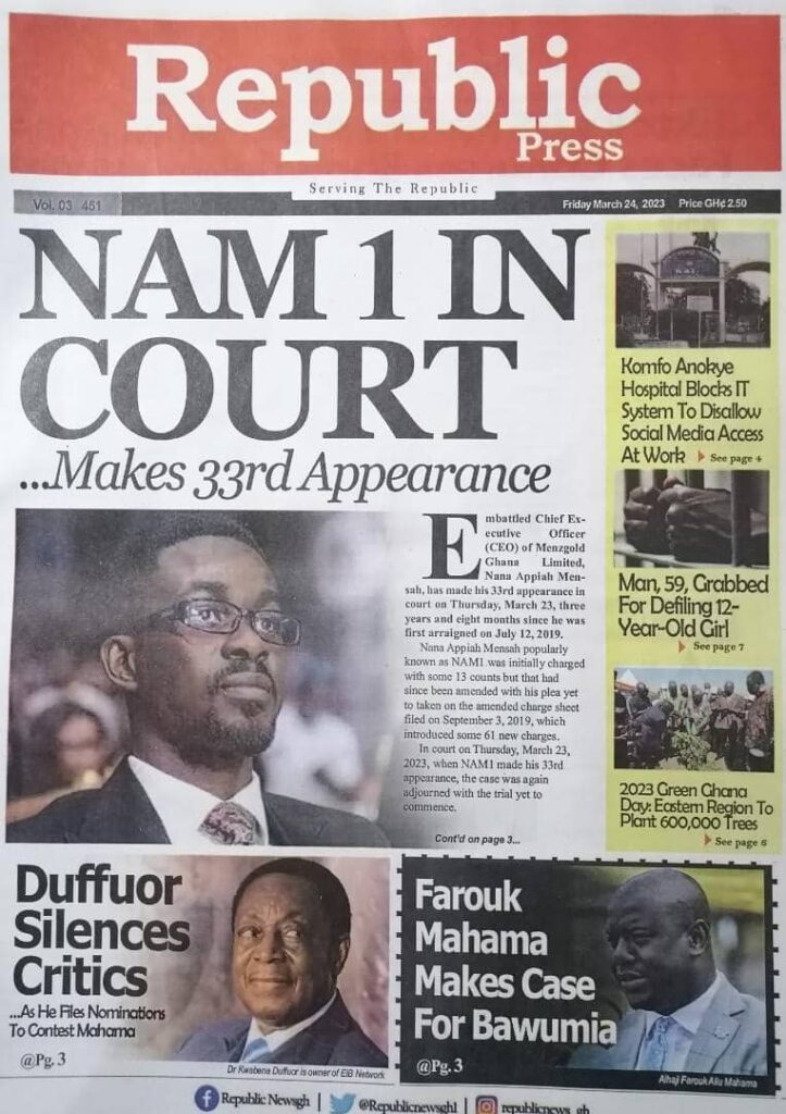 Newspaper Headlines: Friday, March 24, 2023 Newspaper Headlines March 24, 2023 6:46 am - Audio By Carbonatix FacebookWhatsAppTwitterTelegramEmailPinterestPrint Previous articleAdwoa Safo ‘abandons’ Majority againNext articleRonaldo scores twice as he sets men’s caps record in Portugal’s win over Liechtenstein RELATED ARTICLES Newspaper Headlines Newspaper headlines: Monday, November 24, 2025 Newspaper Headlines Newspaper headlines: Friday, November 21, 2025 Newspaper Headlines Newspaper headlines: Thursday, November 20, 2025