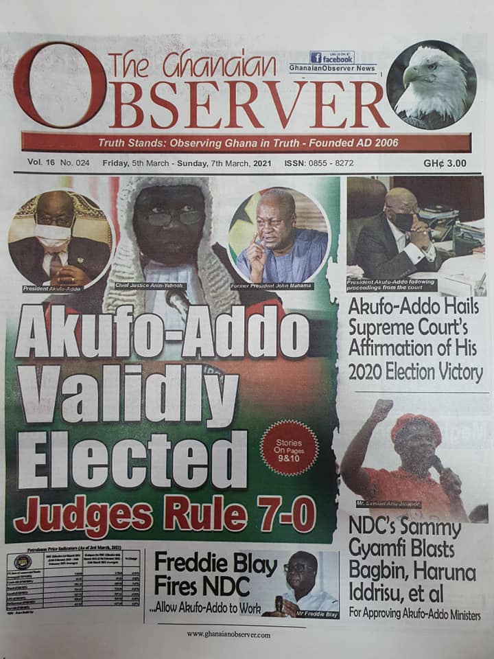 Newspaper Headlines: Friday, March 5, 2021 Newspaper Headlines March 5, 2021 7:36 am - Audio By Carbonatix FacebookWhatsAppTwitterTelegramEmailPinterestPrint Previous articleThe role of Solar Energy in Ghana Energy Security and Climate changeNext articlePL: Mount scores as Chelsea worsen Liverpool’s woes RELATED ARTICLES Newspaper Headlines Newspaper headlines: Monday, November 24, 2025 Newspaper Headlines Newspaper headlines: Friday, November 21, 2025 Newspaper Headlines Newspaper headlines: Thursday, November 20, 2025