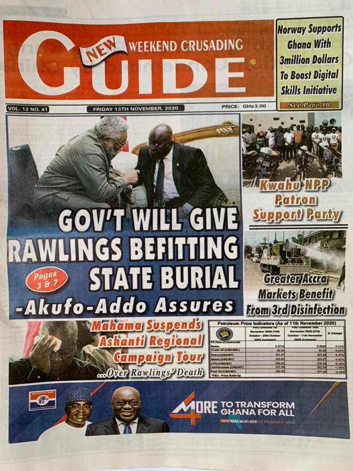 Newspaper Headlines: Friday, November 13, 2020 Newspaper Headlines November 13, 2020 7:44 am - Audio By Carbonatix FacebookWhatsAppTwitterTelegramEmailPinterestPrint Previous articleRawlings’ Death: I know one Prophet will come out and say he saw it – Shatta WaleNext articleMy Ideal Ghana -Nana Ansah Kwao and Prof Nana Aba Appiah take their turn RELATED ARTICLES Newspaper Headlines Newspaper headlines: Monday, November 24, 2025 Newspaper Headlines Newspaper headlines: Friday, November 21, 2025 Newspaper Headlines Newspaper headlines: Thursday, November 20, 2025