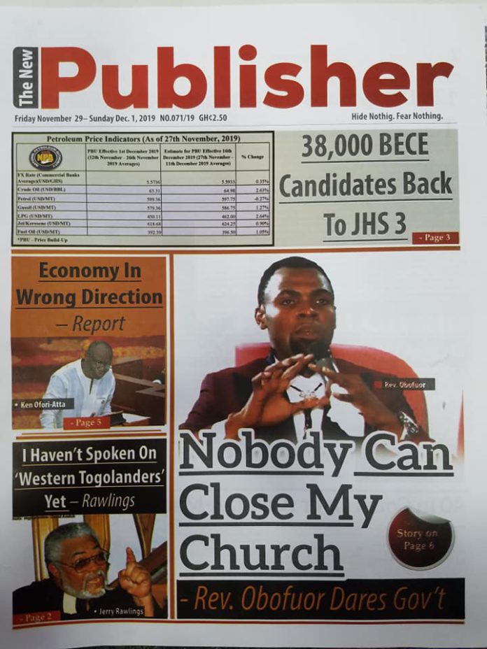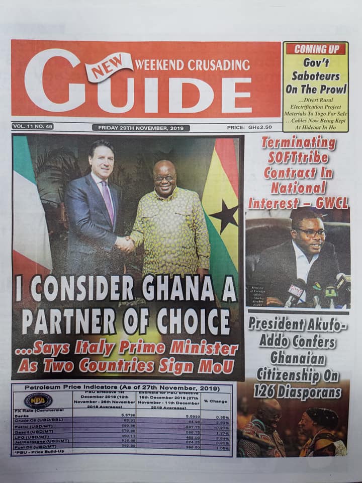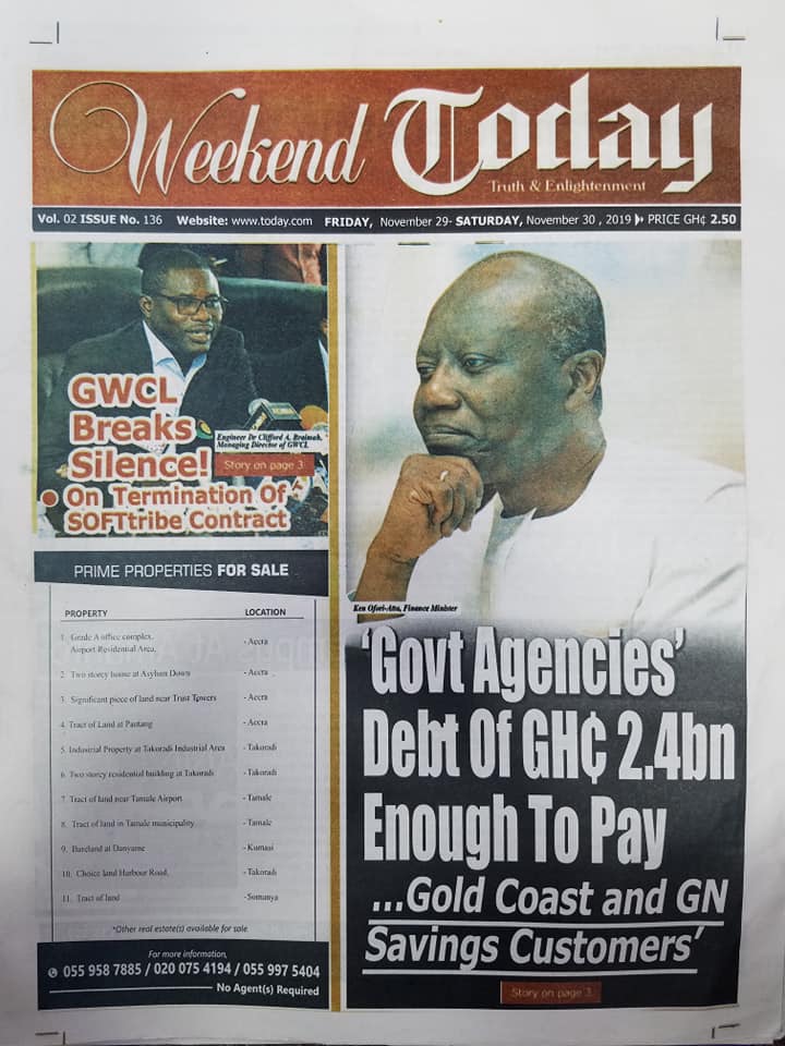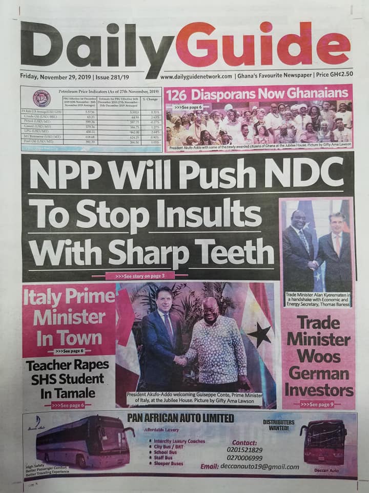 Newspaper Headlines: Friday, November 29, 2019 SourceJoseph Enchill Newspaper HeadlinesUncategorized November 29, 2019 7:30 am - Audio By Carbonatix FacebookWhatsAppTwitterTelegramEmailPinterestPrint Previous article10 rules to have a happy sexual relationshipNext article87-year-old coronated as new Upper West regional Chief Imam RELATED ARTICLES Newspaper Headlines Newspaper headlines: Monday, November 24, 2025 Newspaper Headlines Newspaper headlines: Friday, November 21, 2025 Newspaper Headlines Newspaper headlines: Thursday, November 20, 2025