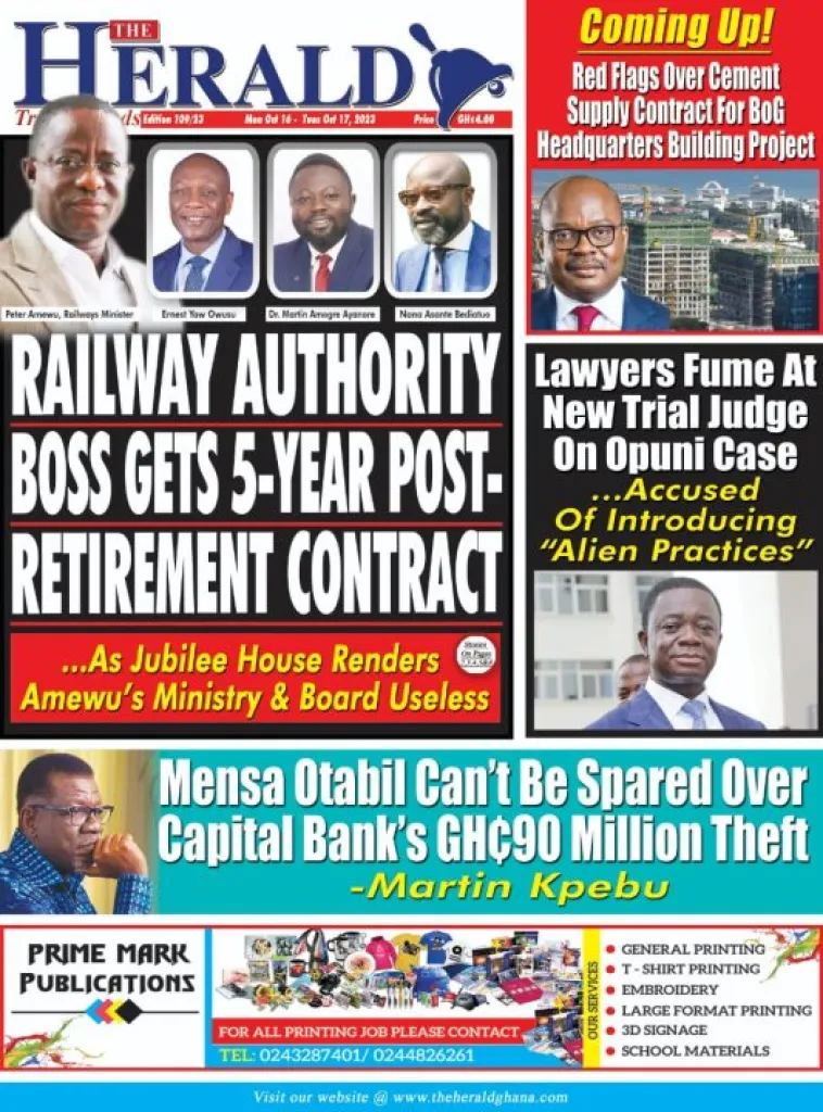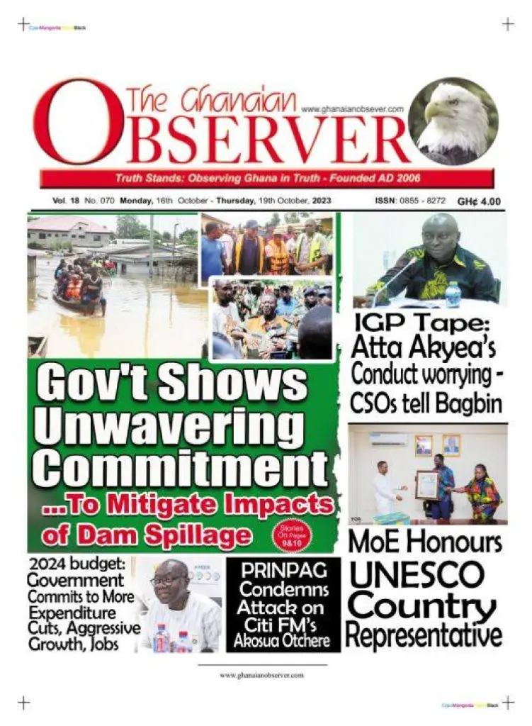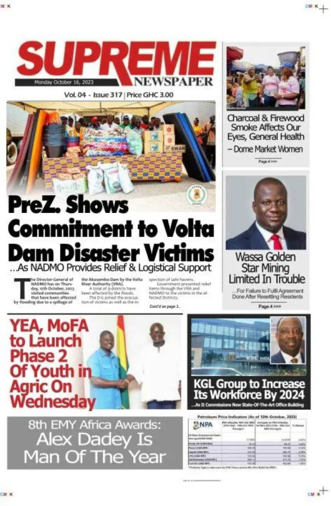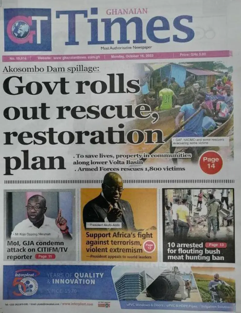 Newspaper headlines : Monday 16th October 2023 Newspaper Headlines October 16, 2023 8:48 am - Audio By Carbonatix FacebookWhatsAppTwitterTelegramEmailPinterestPrint Previous articleAfrican Medical Centre of Excellence Holds Inaugural Board MeetingNext articleTailor in court over alleged manslaughter RELATED ARTICLES Newspaper Headlines Newspaper headlines: Monday, November 24, 2025 Newspaper Headlines Newspaper headlines: Friday, November 21, 2025 Newspaper Headlines Newspaper headlines: Thursday, November 20, 2025