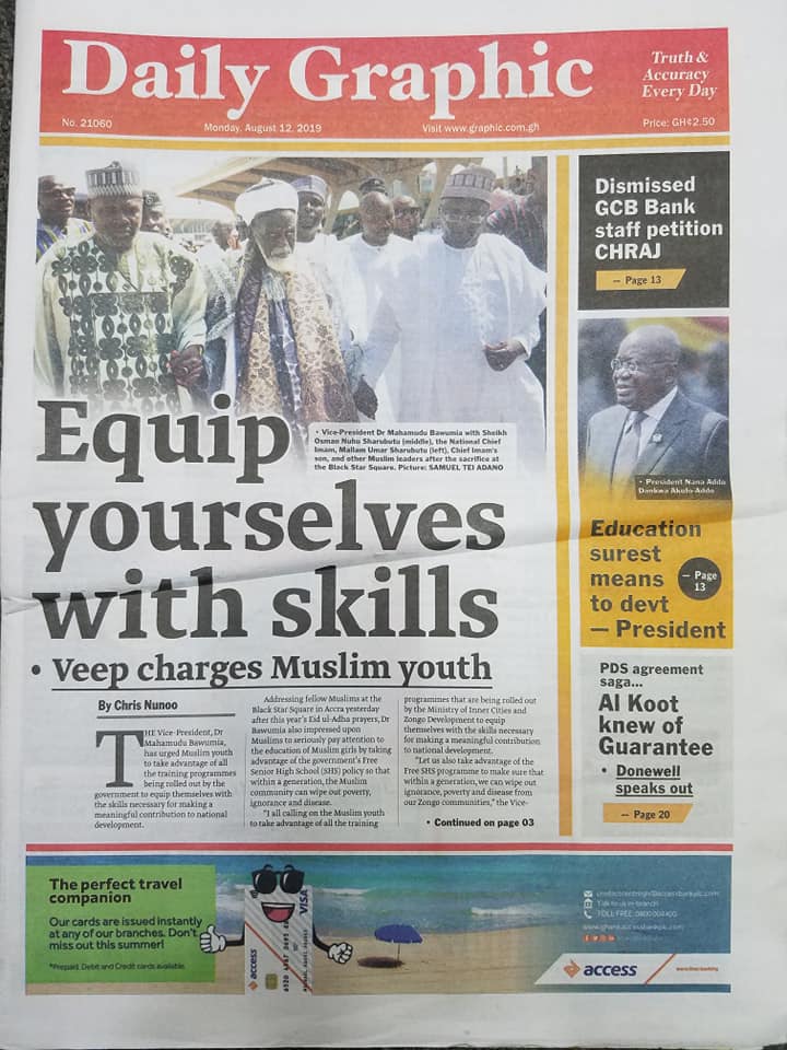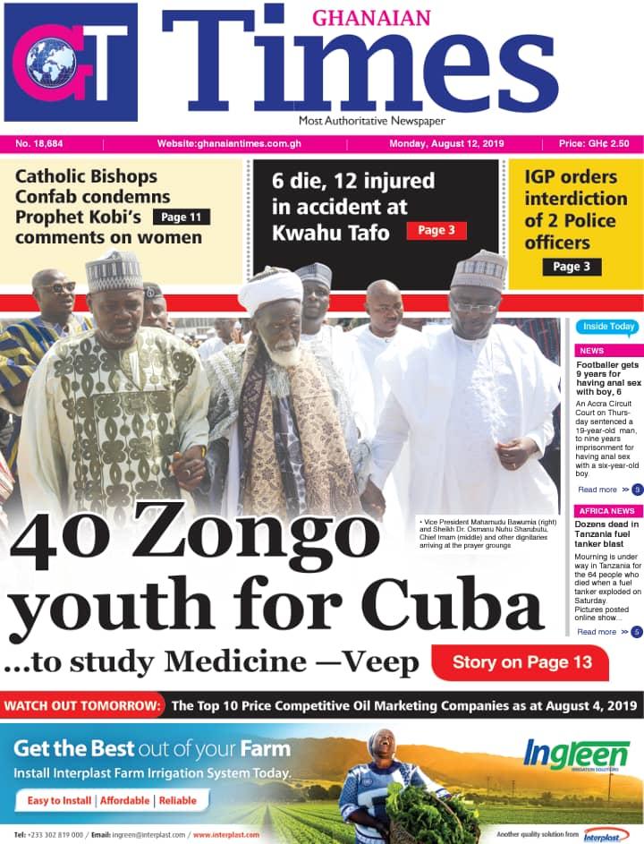 Newspaper Headlines: Monday, August 12, 2019 Newspaper Headlines August 12, 2019 9:55 am - Share FacebookWhatsAppTwitterTelegramEmailPinterestPrint FacebookWhatsAppTwitterTelegramEmailPinterestPrint Previous articlePhotos: 2 caught illegally mining inside pitNext articleAdorable moment: Six-year-old boy sings ‘Brown Skin Girl’ to his baby sister (Video) RELATED ARTICLES Newspaper Headlines Newspaper headlines: Friday, October 31, 2025 Newspaper Headlines Newspaper headlines: Thursday, October 30, 2025 Newspaper Headlines Newspaper headlines: Wednesday, October 29, 2025