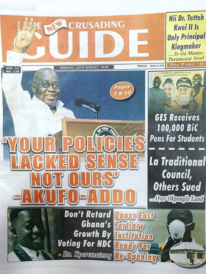 Newspaper Headlines: Monday, August 24, 2020