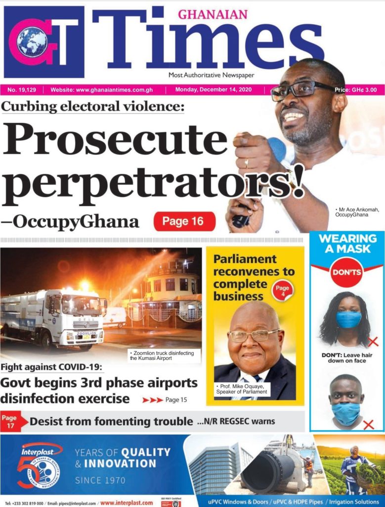 Newspaper Headlines: Monday, December 14, 2020 Newspaper Headlines December 14, 2020 7:43 am - Audio By Carbonatix FacebookWhatsAppTwitterTelegramEmailPinterestPrint Previous articleAkufo-Addo leaves Ghana for Ivory Coast, Guinea and UKNext articleNDC must go to court – Dr Emmanuel Akwetey RELATED ARTICLES Newspaper Headlines Newspaper headlines: Monday, November 24, 2025 Newspaper Headlines Newspaper headlines: Friday, November 21, 2025 Newspaper Headlines Newspaper headlines: Thursday, November 20, 2025