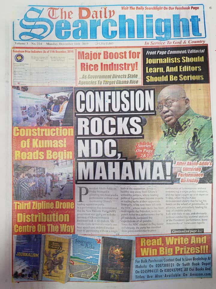 Newspaper Headlines: Monday, December 16, 2019 Newspaper HeadlinesUncategorized December 16, 2019 7:26 am - Audio By Carbonatix FacebookWhatsAppTwitterTelegramEmailPinterestPrint Previous articleStriking teachers still absent in schools in KumasiNext articleFuel prices to go up again RELATED ARTICLES Newspaper Headlines Newspaper headlines: Monday, November 24, 2025 Newspaper Headlines Newspaper headlines: Friday, November 21, 2025 Newspaper Headlines Newspaper headlines: Thursday, November 20, 2025