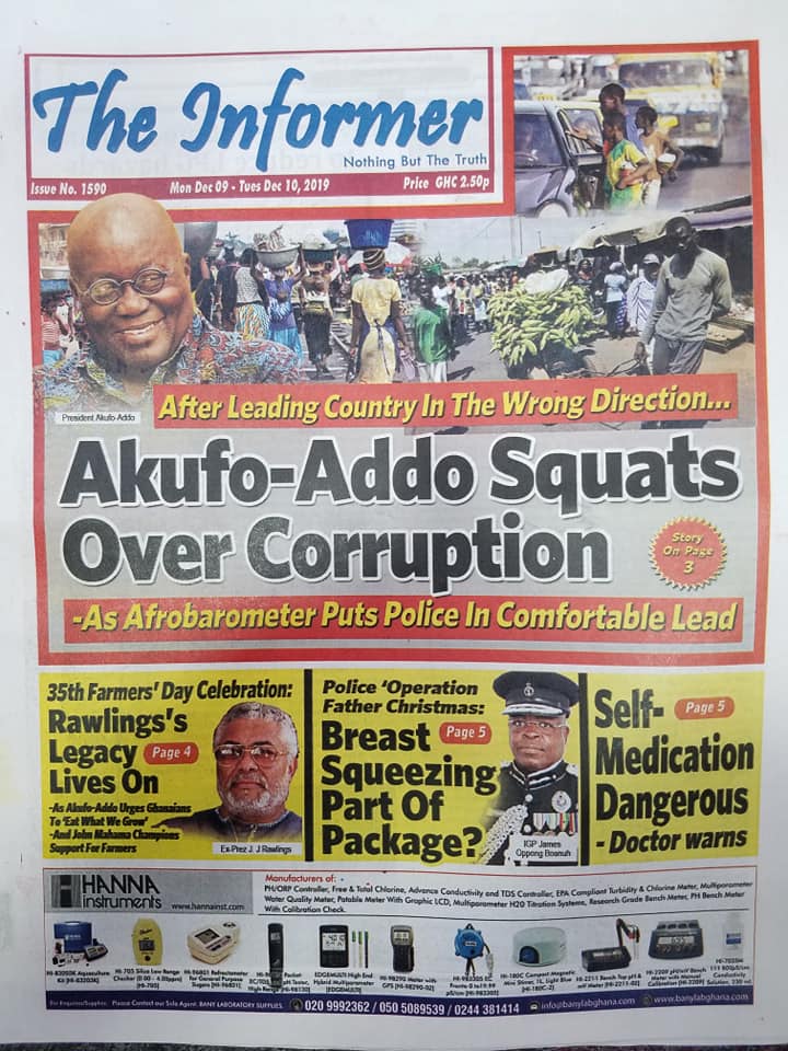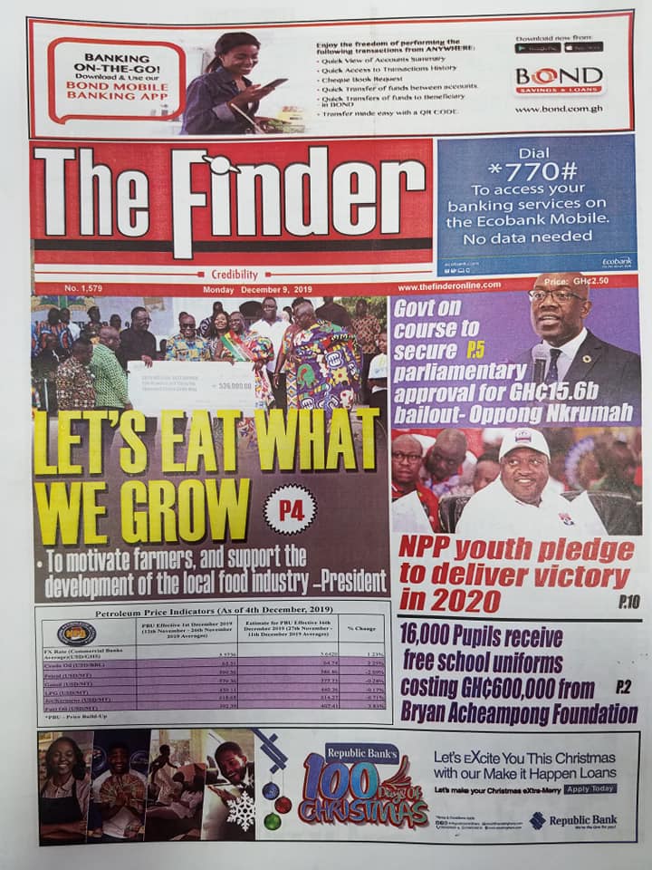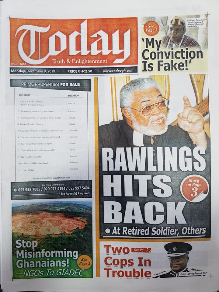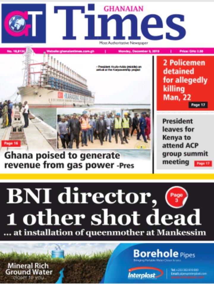 Newspaper Headlines: Monday, December 9, 2019 Newspaper HeadlinesUncategorized December 9, 2019 7:27 am - Audio By Carbonatix FacebookWhatsAppTwitterTelegramEmailPinterestPrint Previous articleWhy Kenyan women are writing on the streetsNext articleListen: Police pick up 5 persons in connection with Mankessim shooting RELATED ARTICLES Newspaper Headlines Newspaper headlines: Monday, November 24, 2025 Newspaper Headlines Newspaper headlines: Friday, November 21, 2025 Newspaper Headlines Newspaper headlines: Thursday, November 20, 2025