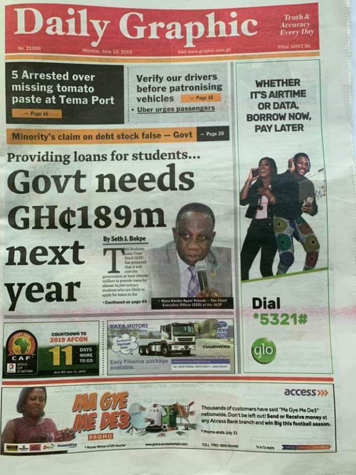 Newspaper Headlines: Monday, June 10, 2019 Newspaper Headlines June 10, 2019 7:13 am - Audio By Carbonatix FacebookWhatsAppTwitterTelegramEmailPinterestPrint Previous articleLotto receiver defiles 11-year-old girlNext articleArrest warrant issued for Ofosu Ampofo RELATED ARTICLES Newspaper Headlines Newspaper headlines: Monday, November 24, 2025 Newspaper Headlines Newspaper headlines: Friday, November 21, 2025 Newspaper Headlines Newspaper headlines: Thursday, November 20, 2025