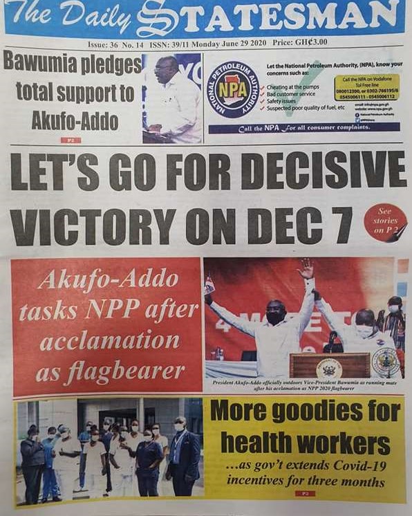 Newspaper Headlines: Monday, June 29, 2020 Newspaper Headlines June 29, 2020 8:36 am - Audio By Carbonatix Disclaimer: The headlines of the newspapers do not in anyway reflect those of Adomonline FacebookWhatsAppTwitterTelegramEmailPinterestPrint Previous articleMultimedia Group appoints Asempa FM’s OB as New Programmes ManagerNext articleVolta region MPs storm Ketu South over ‘military intimidation’ RELATED ARTICLES Newspaper Headlines Newspaper headlines: Monday, November 24, 2025 Newspaper Headlines Newspaper headlines: Friday, November 21, 2025 Newspaper Headlines Newspaper headlines: Thursday, November 20, 2025
