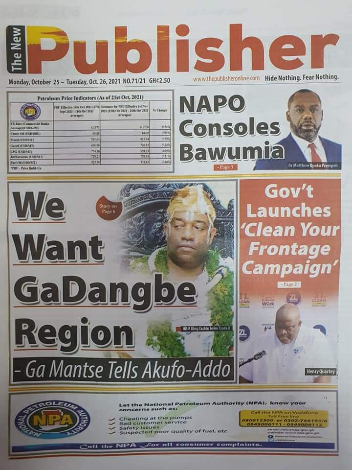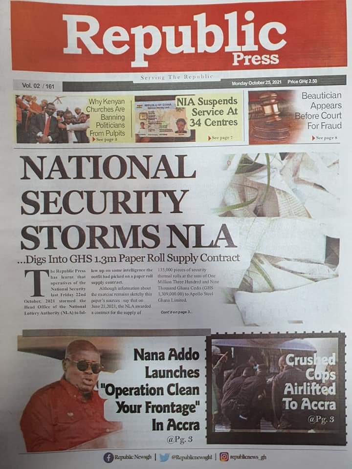 Newspaper Headlines: Monday, October 25, 2021 Newspaper Headlines October 25, 2021 6:30 am - Audio By Carbonatix FacebookWhatsAppTwitterTelegramEmailPinterestPrint Previous articleSpectacular and Elusive Bird rediscovered in Atewa ForestNext article3 in police custody for faking kidnapping incident in Takoradi RELATED ARTICLES Newspaper Headlines Newspaper headlines: Monday, November 24, 2025 Newspaper Headlines Newspaper headlines: Friday, November 21, 2025 Newspaper Headlines Newspaper headlines: Thursday, November 20, 2025