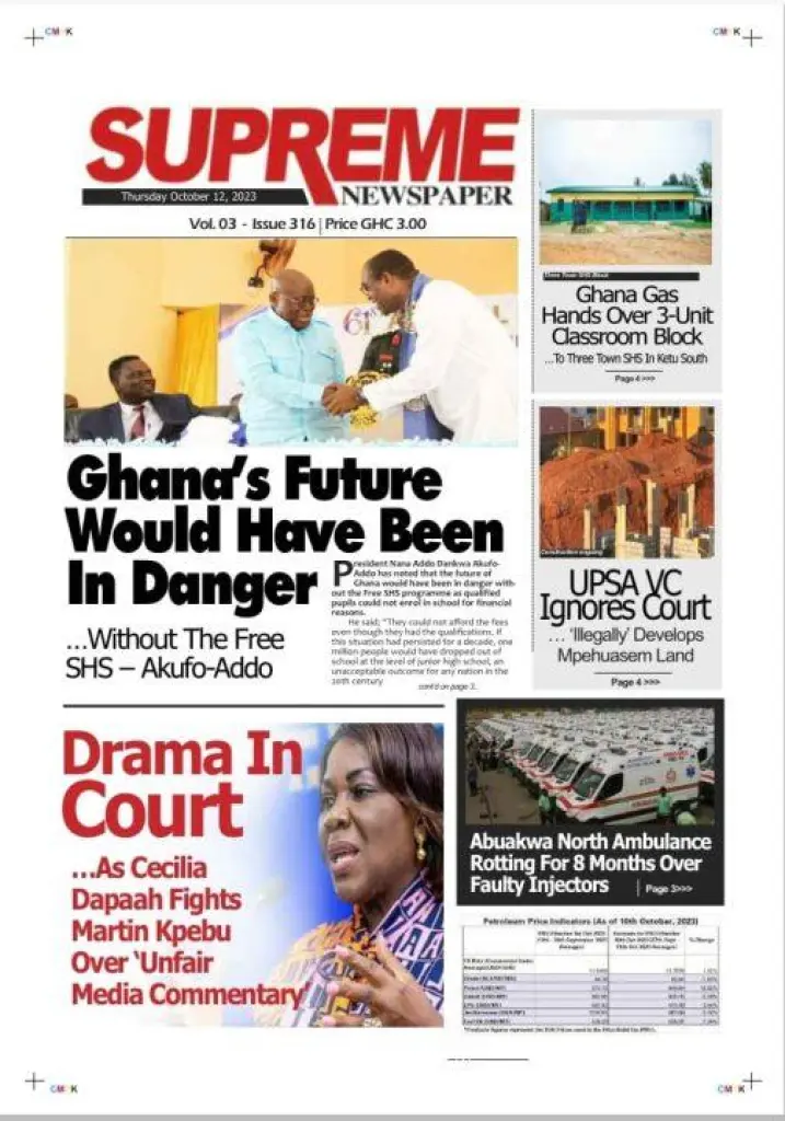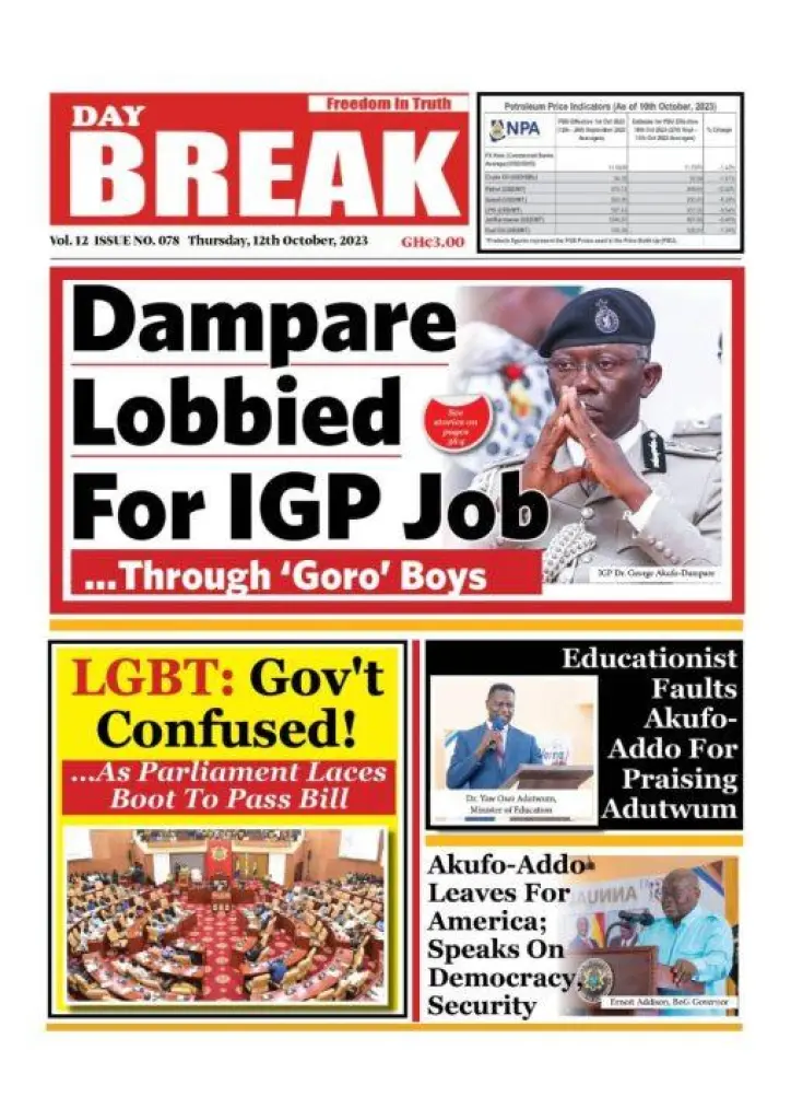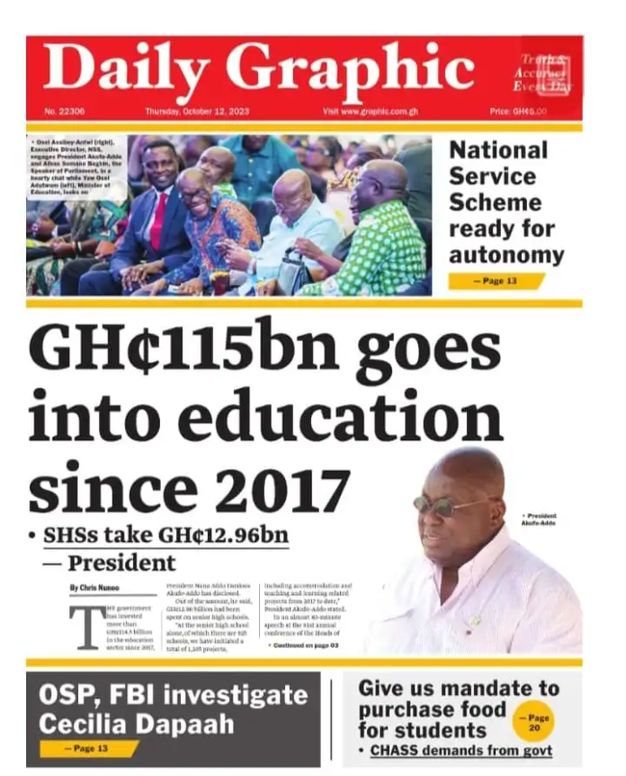 Newspaper headlines : Thursday 12th October 2023 Newspaper Headlines October 12, 2023 8:11 am - Audio By Carbonatix FacebookWhatsAppTwitterTelegramEmailPinterestPrint Previous article“Taxpayers’ money is used to train our nurses; we can’t sit and have them all leave”Next articleElection 2024: NDC ready to assist EC resolve network issues RELATED ARTICLES Newspaper Headlines Newspaper headlines: Monday, November 24, 2025 Newspaper Headlines Newspaper headlines: Friday, November 21, 2025 Newspaper Headlines Newspaper headlines: Thursday, November 20, 2025
