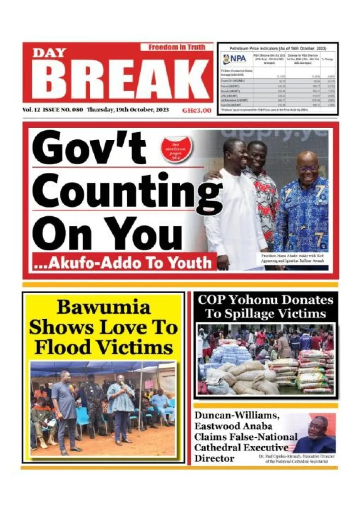 Newspaper headlines: Thursday 19th October 2023 Newspaper Headlines October 19, 2023 8:37 am - Audio By Carbonatix FacebookWhatsAppTwitterTelegramEmailPinterestPrint Previous articleMfantsipim Old Boys furious over student population hikeNext articleGNAT warns of dire consequences of using classrooms as hosting centers during emergencies RELATED ARTICLES Newspaper Headlines Newspaper headlines: Monday, November 24, 2025 Newspaper Headlines Newspaper headlines: Friday, November 21, 2025 Newspaper Headlines Newspaper headlines: Thursday, November 20, 2025