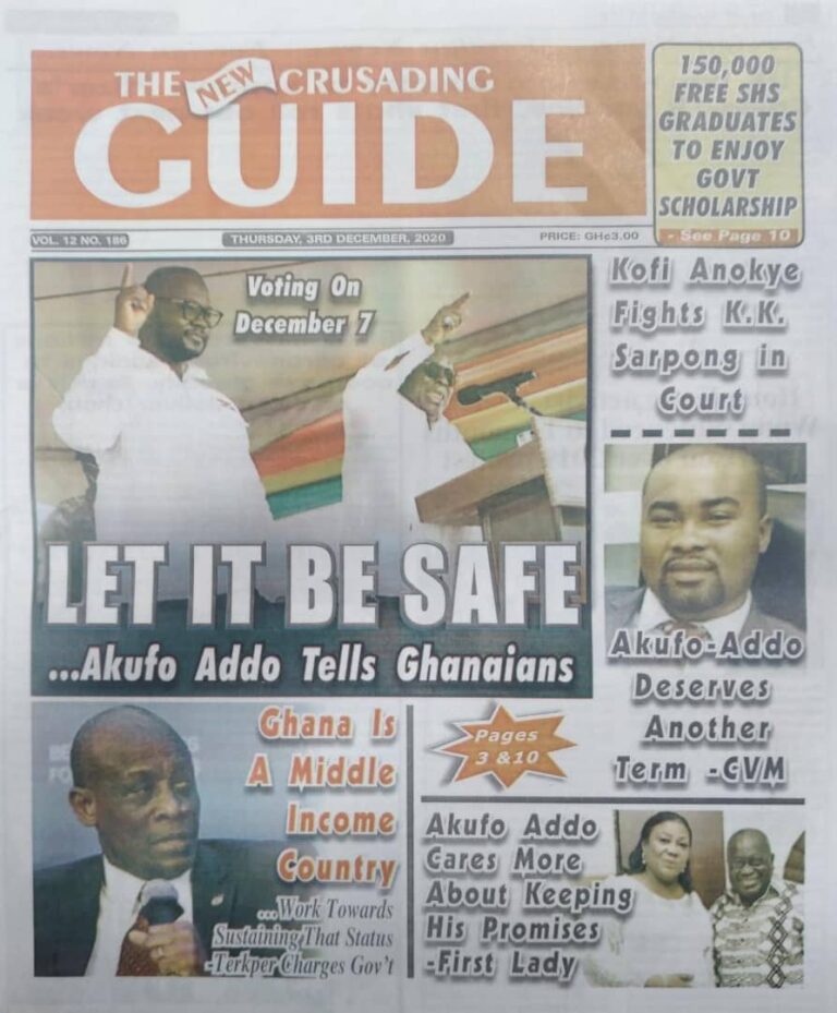 Newspaper Headlines: Thursday, December 3, 2020 Newspaper Headlines December 3, 2020 7:26 am - Audio By Carbonatix FacebookWhatsAppTwitterTelegramEmailPinterestPrint Previous articleHollard Insurance wins massively at the Chartered Institute of Marketing Ghana Awards (CIMG)Next articleMum, 32, admits having s3x with boy, 14 – but says she didn’t know he was underage RELATED ARTICLES Newspaper Headlines Newspaper headlines: Monday, November 24, 2025 Newspaper Headlines Newspaper headlines: Friday, November 21, 2025 Newspaper Headlines Newspaper headlines: Thursday, November 20, 2025