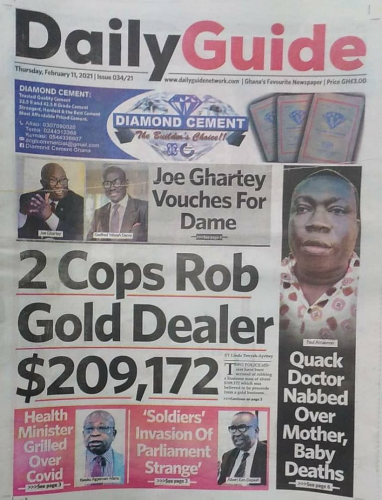 Newspaper Headlines: Thursday, February 11, 2021 Newspaper Headlines February 11, 2021 7:47 am - Audio By Carbonatix FacebookWhatsAppTwitterTelegramEmailPinterestPrint Previous articleAmbulance attack: 2 suspects arrestedNext articlePopular cross dresser, two others jailed for practicing homos3xuality [Video] RELATED ARTICLES Newspaper Headlines Newspaper headlines: Monday, November 24, 2025 Newspaper Headlines Newspaper headlines: Friday, November 21, 2025 Newspaper Headlines Newspaper headlines: Thursday, November 20, 2025