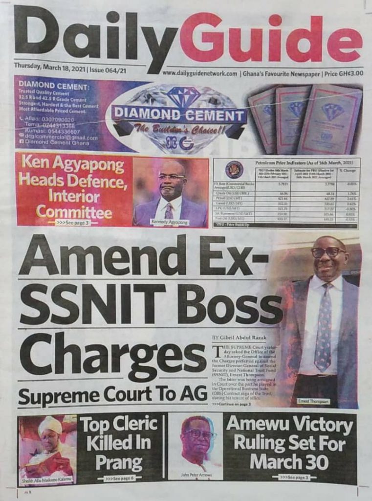 Newspaper Headlines: Thursday, March 18, 2021 Newspaper Headlines March 18, 2021 7:51 am - Audio By Carbonatix FacebookWhatsAppTwitterTelegramEmailPinterestPrint Previous articleBayern cruise past Lazio to Champions League quarter-finalsNext article5 home remedies to get rid of unwanted body hair RELATED ARTICLES Newspaper Headlines Newspaper headlines: Monday, November 24, 2025 Newspaper Headlines Newspaper headlines: Friday, November 21, 2025 Newspaper Headlines Newspaper headlines: Thursday, November 20, 2025