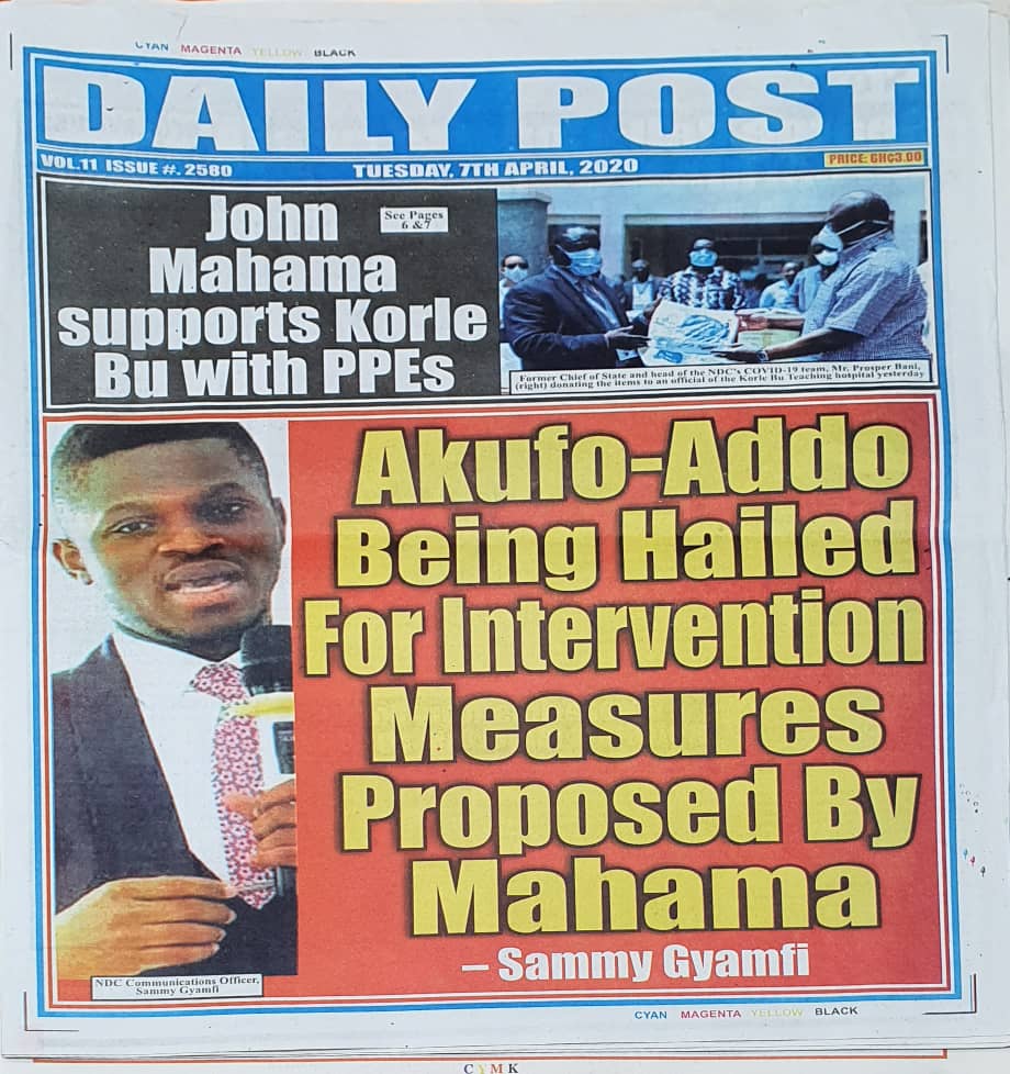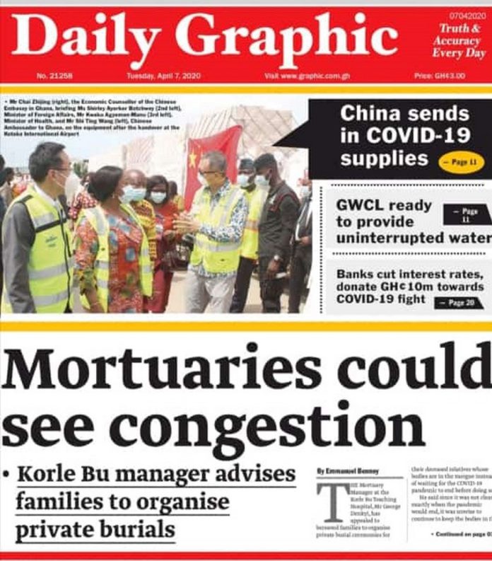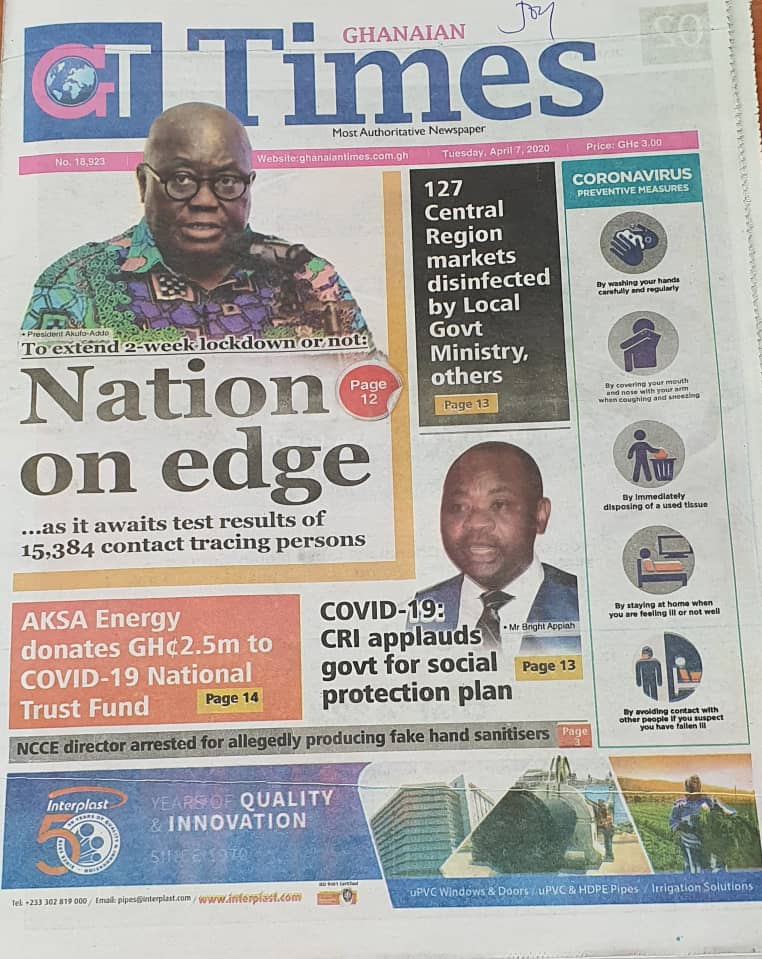 Newspaper Headlines: Tuesday, April 7, 2020 Newspaper HeadlinesUncategorized April 7, 2020 6:59 am - Audio By Carbonatix FacebookWhatsAppTwitterTelegramEmailPinterestPrint Previous articleGhana’s coronavirus cases rise to 287Next articleBurna Boy in lineup of global event to boost healthcare workers RELATED ARTICLES Newspaper Headlines Newspaper headlines: Monday, November 24, 2025 Newspaper Headlines Newspaper headlines: Friday, November 21, 2025 Newspaper Headlines Newspaper headlines: Thursday, November 20, 2025