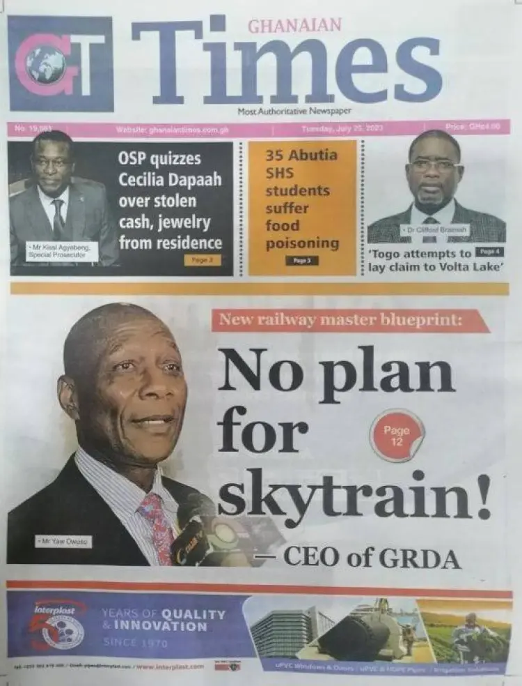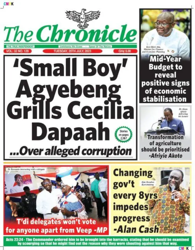 Newspaper Headlines: Tuesday, July 25, 2023 Newspaper Headlines July 25, 2023 6:29 am - Audio By Carbonatix FacebookWhatsAppTwitterTelegramEmailPinterestPrint Previous articleNana Oye blasts Akufo-Addo over handling of Cecilia Dapaah’s resignationNext articleEjisu to face Santasi in the final of 2023 MTN Ashantifest Football Fiesta on July 30 RELATED ARTICLES Local News Extradition of Ghanaian suspects from the US may not be ‘very quick’ – US Embassy explains why Local News Nkwanta South MCE inaugurates Disaster Management Committee Business Local Government Minister declares Zoomlion “essential” to Ghana’s development