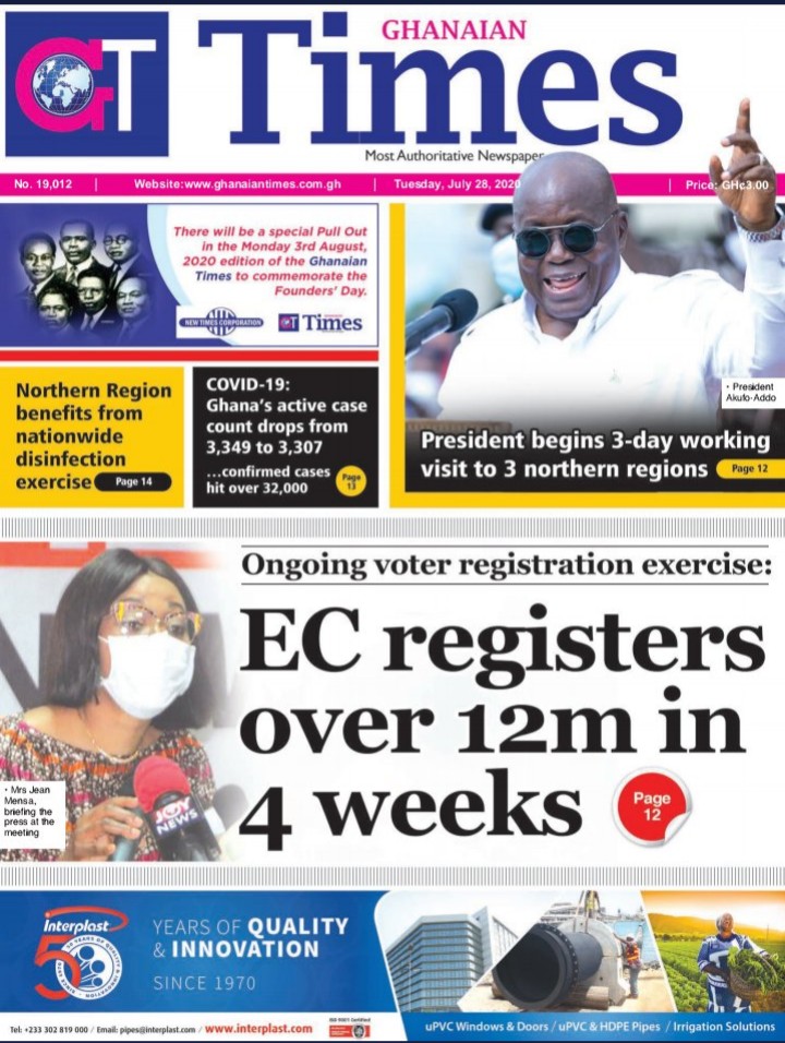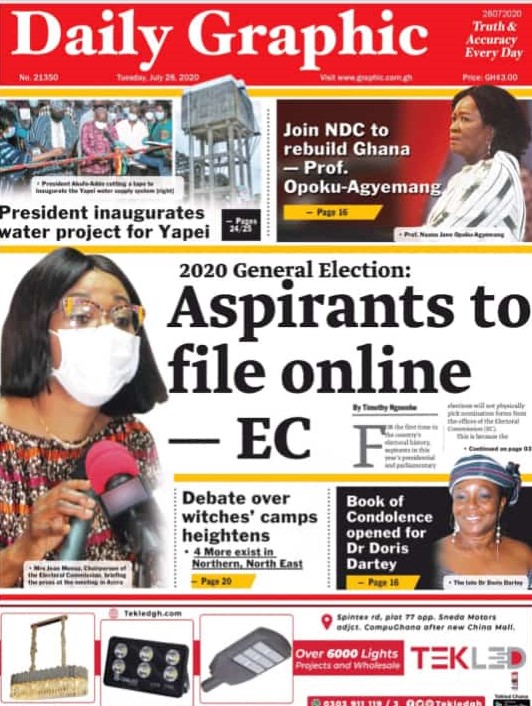 Newspaper Headlines: Tuesday, July 28, 2020 Newspaper Headlines July 28, 2020 6:55 am - Audio By Carbonatix FacebookWhatsAppTwitterTelegramEmailPinterestPrint Previous articleNDC govt to introduce ‘Operation Sting’ to fight corruptionNext articleWhy 90-year-old alleged witch was lynched RELATED ARTICLES Newspaper Headlines Newspaper headlines: Monday, November 24, 2025 Newspaper Headlines Newspaper headlines: Friday, November 21, 2025 Newspaper Headlines Newspaper headlines: Thursday, November 20, 2025