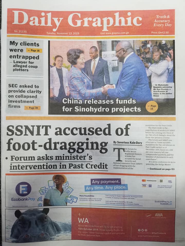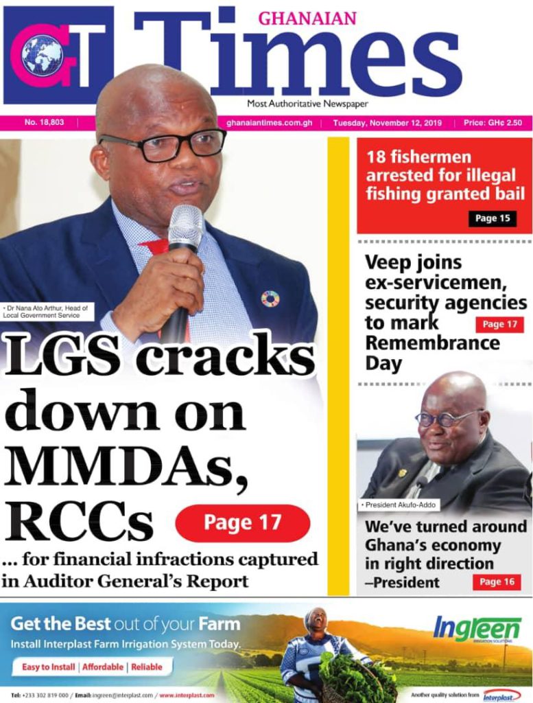 Newspaper Headlines: Tuesday, November 12, 2019 Newspaper Headlines November 12, 2019 8:05 am - Audio By Carbonatix FacebookWhatsAppTwitterTelegramEmailPinterestPrint Previous articleAmewu is NPP parliamentary candidate for HohoeNext articleWashing bay attendant rams car into two at Takoradi RELATED ARTICLES Newspaper Headlines Newspaper headlines: Monday, November 24, 2025 Newspaper Headlines Newspaper headlines: Friday, November 21, 2025 Newspaper Headlines Newspaper headlines: Thursday, November 20, 2025