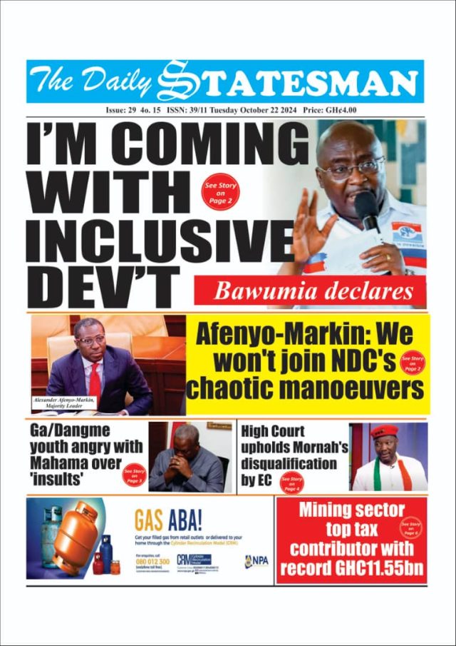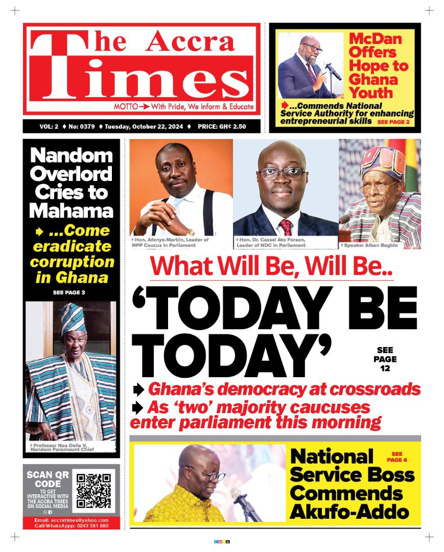 Newspaper headlines: Tuesday, October 22, 2024 Newspaper Headlines October 22, 2024 7:30 am - Audio By Carbonatix FacebookWhatsAppTwitterTelegramEmailPinterestPrint Previous articleZambian President sacks top judges who ruled in favour of his rivalNext articleThree illegal miners remanded TagsNewspaper headlines RELATED ARTICLES News Four arraigned over importation of cannabis concealed in gift box Nigeria Nigeria’s richest man Dangote escalates oil fight with regulator, seeks corruption probe Local News Otumfuo chastises Bono Regional Minister for using his political position to meddle in Sampa chieftaincy affairs