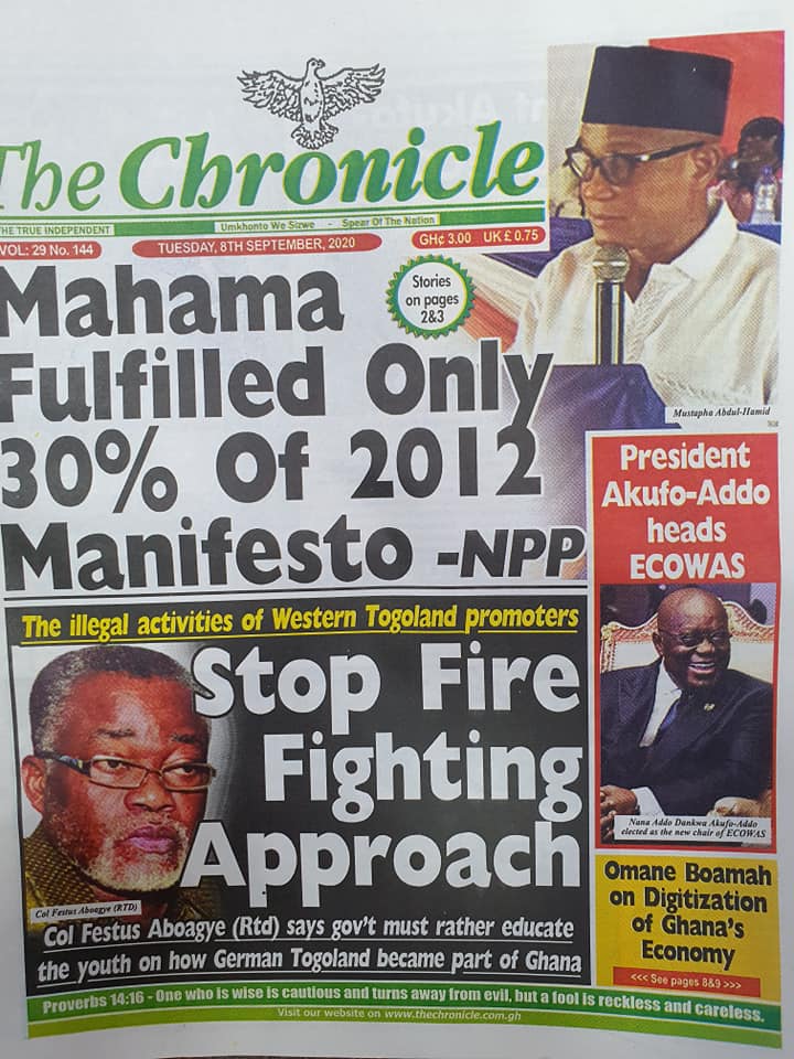 Newspaper Headlines: Tuesday, September 8, 2020