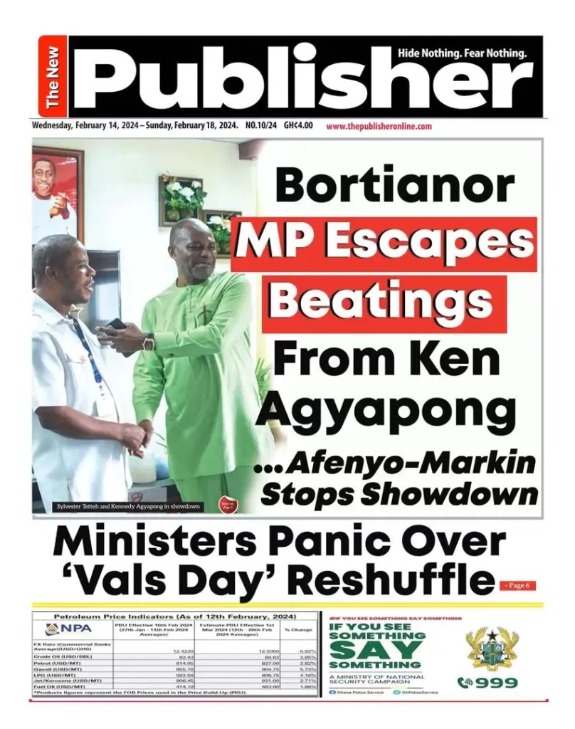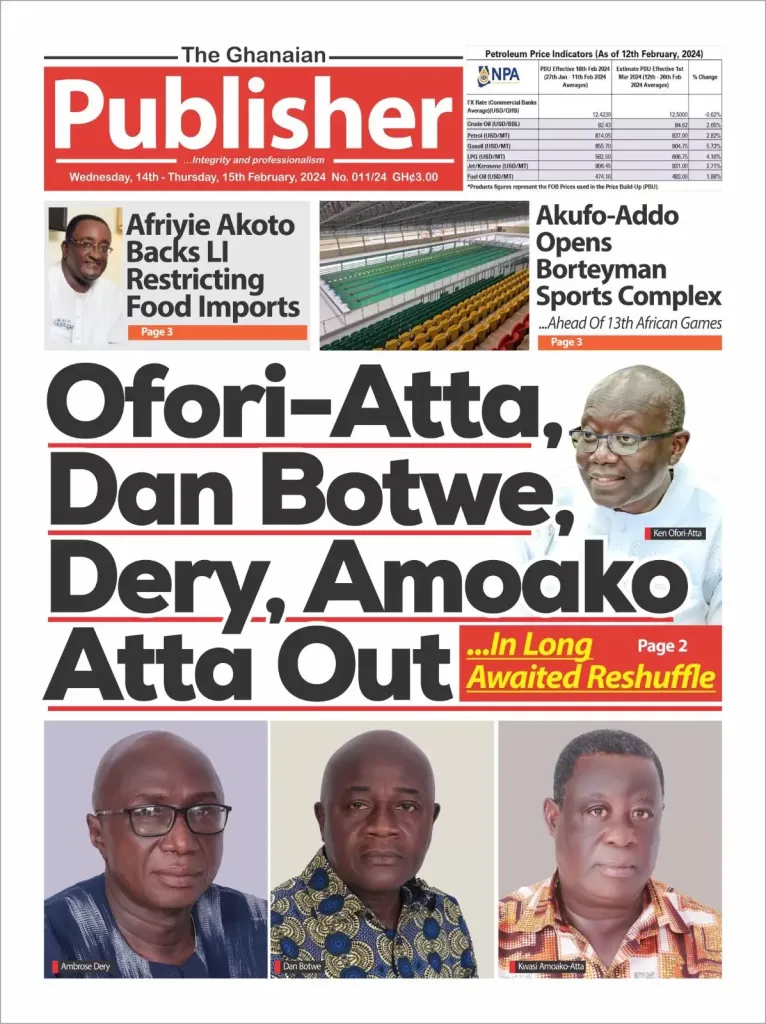 Newspaper headlines: Wednesday 14th February 2024 Newspaper Headlines February 14, 2024 7:32 am - Audio By Carbonatix FacebookWhatsAppTwitterTelegramEmailPinterestPrint Previous articlePresident Akufo-Addo Commissions Borteyman Sports Facilities; Ghana Ready To Host Historical 13th African GamesNext articleCivilians suffer as ‘perfect storm’ of war, disease and displacement grips Sudan RELATED ARTICLES Newspaper Headlines Newspaper headlines: Monday, November 24, 2025 Newspaper Headlines Newspaper headlines: Friday, November 21, 2025 Newspaper Headlines Newspaper headlines: Thursday, November 20, 2025