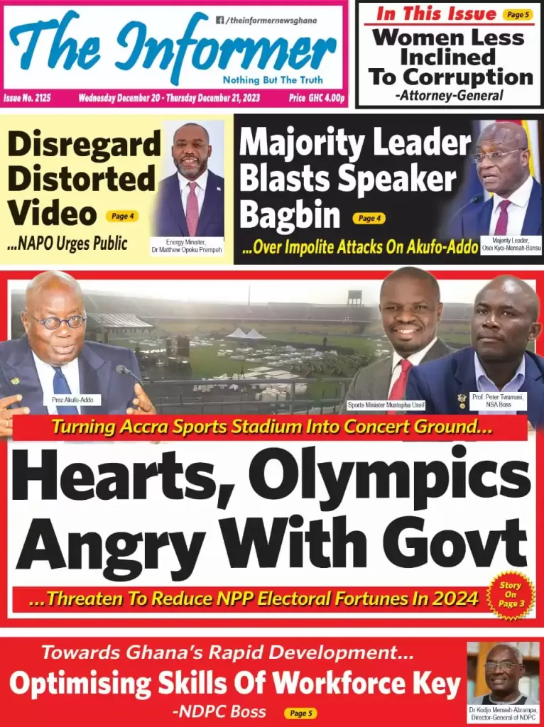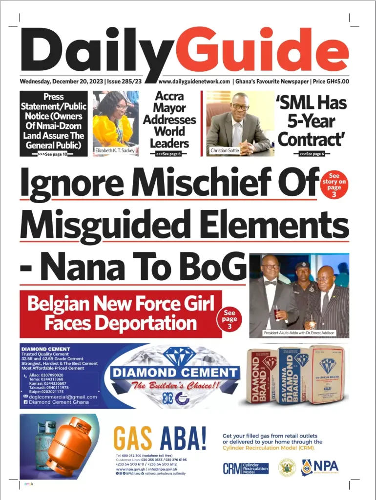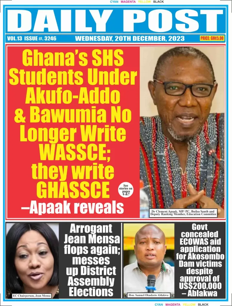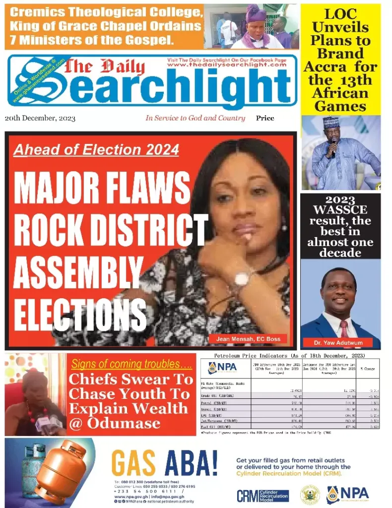 Newspaper headlines: Wednesday 20th December 2023 Newspaper Headlines December 20, 2023 8:22 am - Audio By Carbonatix FacebookWhatsAppTwitterTelegramEmailPinterestPrint Previous articleFormer Defence Minister Lt. General J.H. Smith passes onNext articleWorld Health Organization (WHO) workshop addresses Health Technology Assessment challenges in African countries RELATED ARTICLES Newspaper Headlines Newspaper headlines: Monday, November 24, 2025 Newspaper Headlines Newspaper headlines: Friday, November 21, 2025 Newspaper Headlines Newspaper headlines: Thursday, November 20, 2025