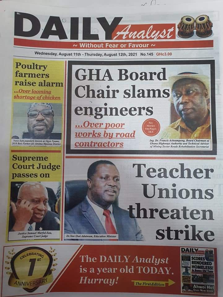 Newspaper Headlines: Wednesday, August 11, 2021 Newspaper Headlines August 11, 2021 8:08 am - Audio By Carbonatix FacebookWhatsAppTwitterTelegramEmailPinterestPrint Previous articleAdebayor’s latest cars cause massive stirNext articleCouple dragged to court for burning four-year-old girl’s finger RELATED ARTICLES Newspaper Headlines Newspaper headlines: Monday, November 24, 2025 Newspaper Headlines Newspaper headlines: Friday, November 21, 2025 Newspaper Headlines Newspaper headlines: Thursday, November 20, 2025