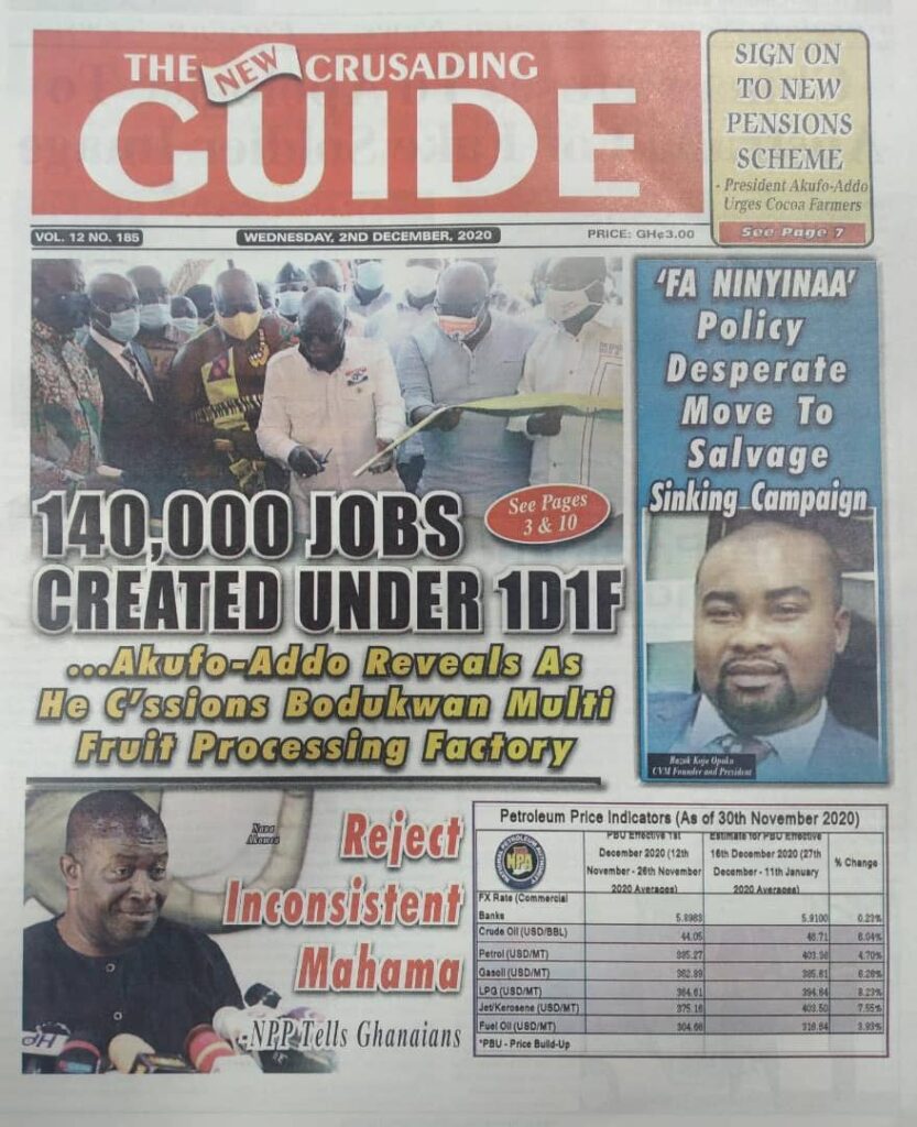 Newspaper Headlines: Wednesday, December 2, 2020 Newspaper Headlines December 2, 2020 7:15 am - Audio By Carbonatix FacebookWhatsAppTwitterTelegramEmailPinterestPrint Previous articleEC urges electorate to go to polling stations with facemasksNext articleLukaku double keeps Inter alive in Champions League RELATED ARTICLES Newspaper Headlines Newspaper headlines: Monday, November 24, 2025 Newspaper Headlines Newspaper headlines: Friday, November 21, 2025 Newspaper Headlines Newspaper headlines: Thursday, November 20, 2025