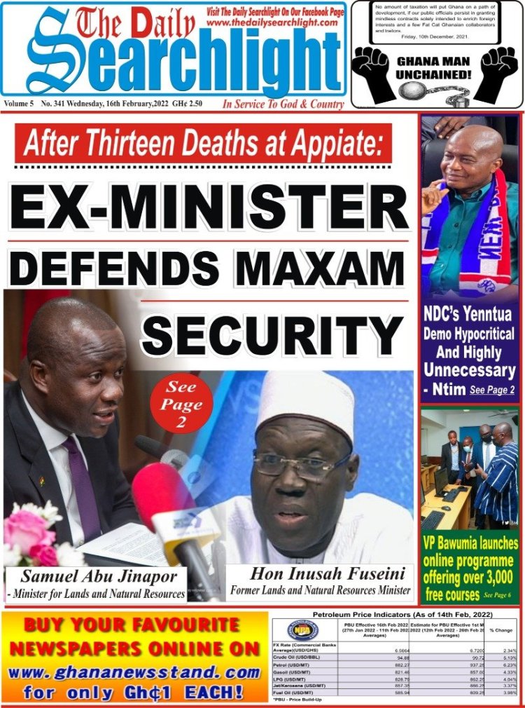 Newspaper Headlines: Wednesday, February 16, 2022 Newspaper Headlines February 16, 2022 8:25 am - Audio By Carbonatix FacebookWhatsAppTwitterTelegramEmailPinterestPrint Previous articleLamashegu: Irate youth set fire officer’s house ablaze [Video]Next articleExposé on how National Blood Service syndicate illegally sell a pint of blood for ¢750 [Video] RELATED ARTICLES Newspaper Headlines Newspaper headlines: Monday, November 24, 2025 Newspaper Headlines Newspaper headlines: Friday, November 21, 2025 Newspaper Headlines Newspaper headlines: Thursday, November 20, 2025