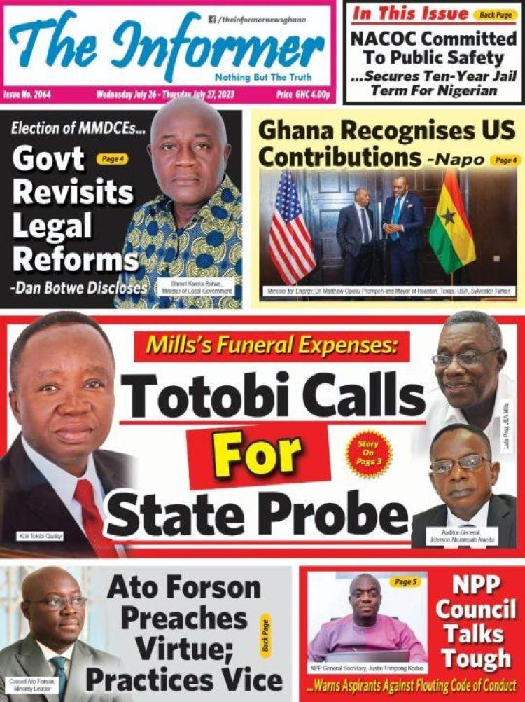 Newspaper Headlines: Wednesday, July 26, 2023 Newspaper Headlines July 26, 2023 6:39 am - Audio By Carbonatix FacebookWhatsAppTwitterTelegramEmailPinterestPrint Previous articleGame Park Limited sets new standard in lottery; unveils first-class draw studioNext articleI felt unwanted in the movie industry – Prince David Osei RELATED ARTICLES Entertainment Drama and laughter as Adom TV hosts Nine Lessons & Carols tomorrow, Dec 20 Local News Accra traffic has reduced due to Lower fuel prices – Nana Yaa Jantuah News Fire destroys self-contained room at Akroso Newtown