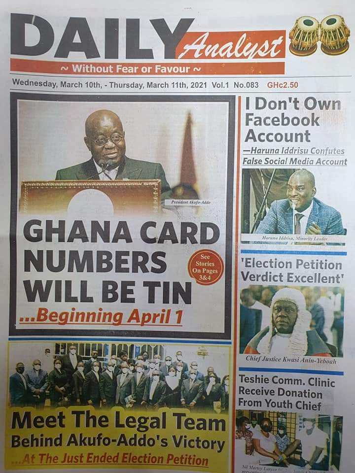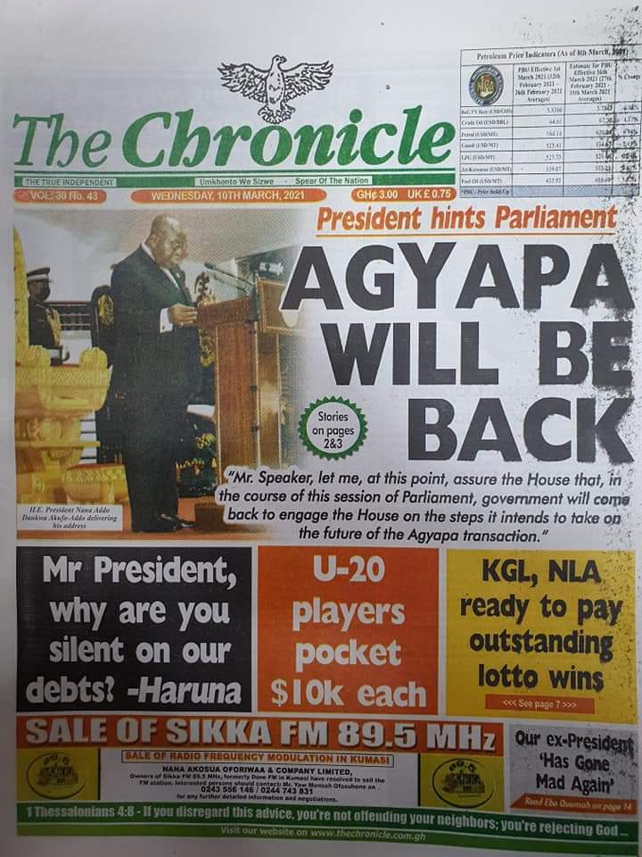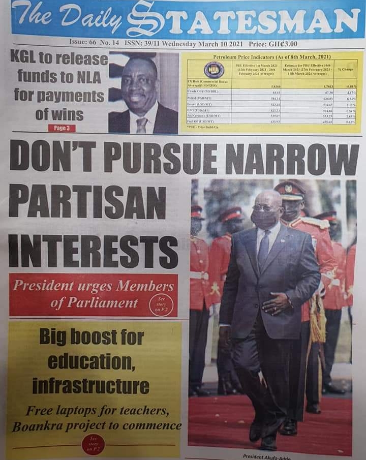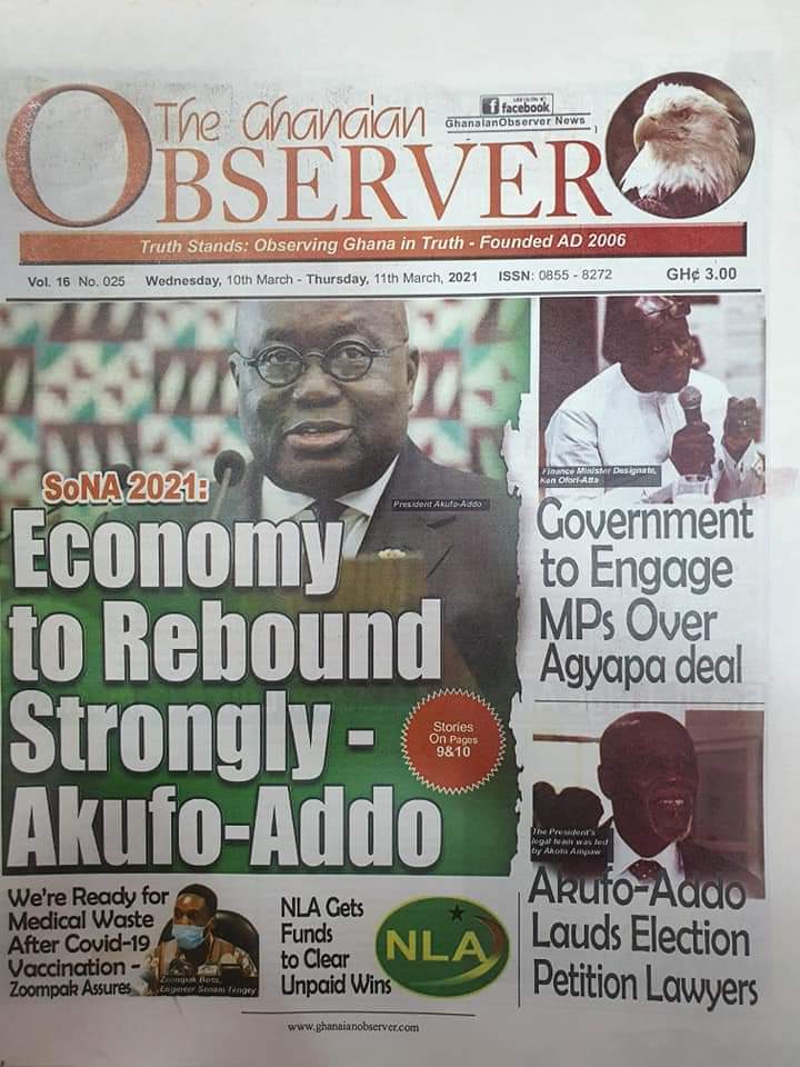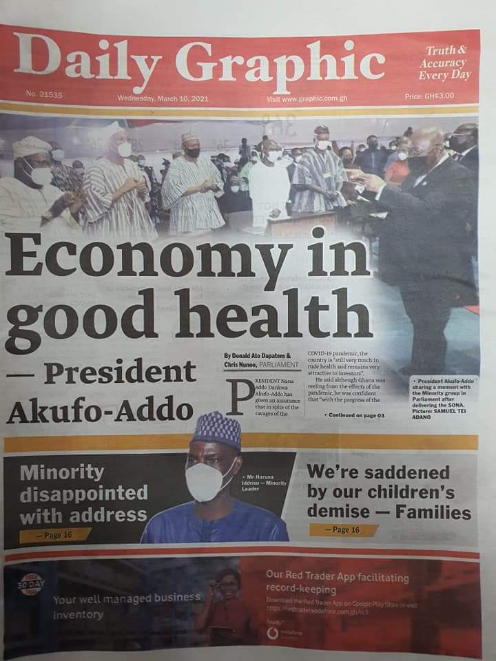 Newspaper Headlines: Wednesday, March 10, 2021 Newspaper Headlines March 10, 2021 7:59 am - Audio By Carbonatix FacebookWhatsAppTwitterTelegramEmailPinterestPrint Previous articleNsoromma Season 3 finaleNext articleDon’t buy Covid-19 vaccines online – FDA cautions RELATED ARTICLES Newspaper Headlines Newspaper headlines: Monday, November 24, 2025 Newspaper Headlines Newspaper headlines: Friday, November 21, 2025 Newspaper Headlines Newspaper headlines: Thursday, November 20, 2025
