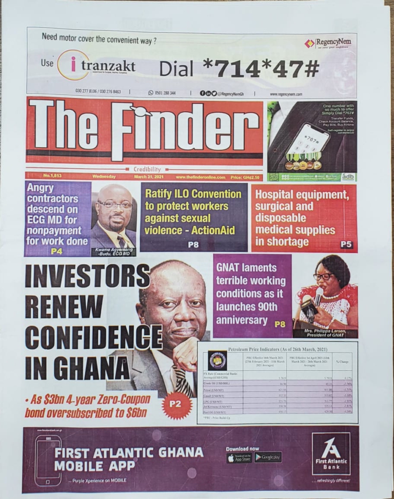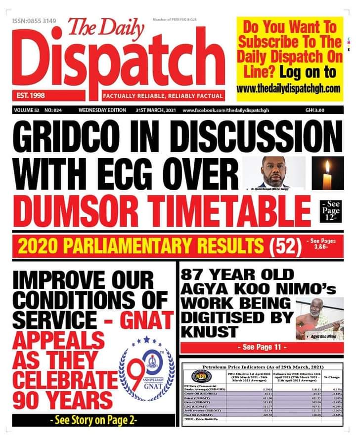 Newspaper Headlines: Wednesday, March 31, 2021 Newspaper Headlines March 31, 2021 8:34 am - Audio By Carbonatix FacebookWhatsAppTwitterTelegramEmailPinterestPrint Previous articleWhy there is ‘dumsor’ in Kumasi – Energy expert explains [ Audio]Next articleAngry NDC women ‘attack’ Allotey Jacobs in Cape Coast [video] RELATED ARTICLES Newspaper Headlines Newspaper headlines: Monday, November 24, 2025 Newspaper Headlines Newspaper headlines: Friday, November 21, 2025 Newspaper Headlines Newspaper headlines: Thursday, November 20, 2025