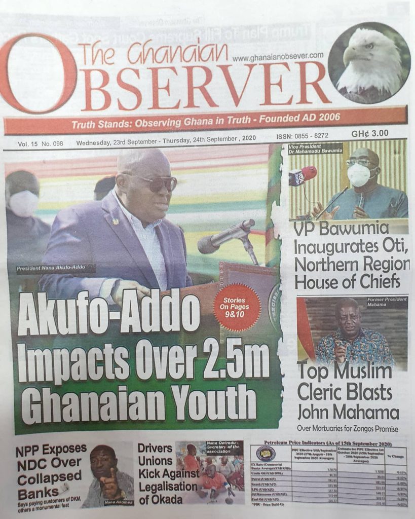 Newspaper Headlines: Wednesday, September 23, 2020 Newspaper Headlines September 23, 2020 7:48 am - Audio By Carbonatix FacebookWhatsAppTwitterTelegramEmailPinterestPrint Previous article7 common mistakes you probably make in the bathroomNext articleMeet Obaapa Christy’s all-grown-up handsome son RELATED ARTICLES Newspaper Headlines Newspaper headlines: Monday, November 24, 2025 Newspaper Headlines Newspaper headlines: Friday, November 21, 2025 Newspaper Headlines Newspaper headlines: Thursday, November 20, 2025