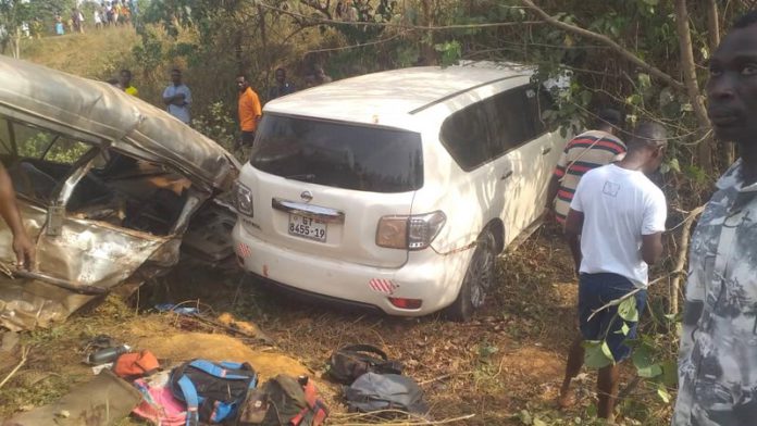 A Nissan Patrol vehicle, believed to be the official vehicle of District Chief Executive for Atwima Kwanwoma in the Ashanti region, Prince Karikari, is said to have crashed into the Hyundai mini bus with registration GE 2291-10.
