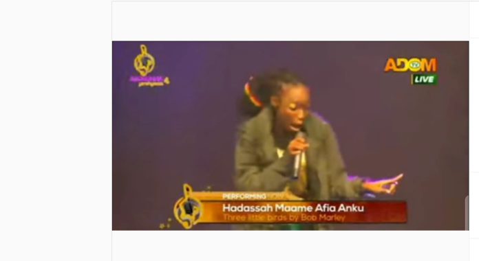 Hadassah Maame Afia Anku, couldn’t qualify to the next stage of the competition due to the inadequate votes amassed, hence got evicted after performing Bob Marley’s ‘Three Little Birds’ song.