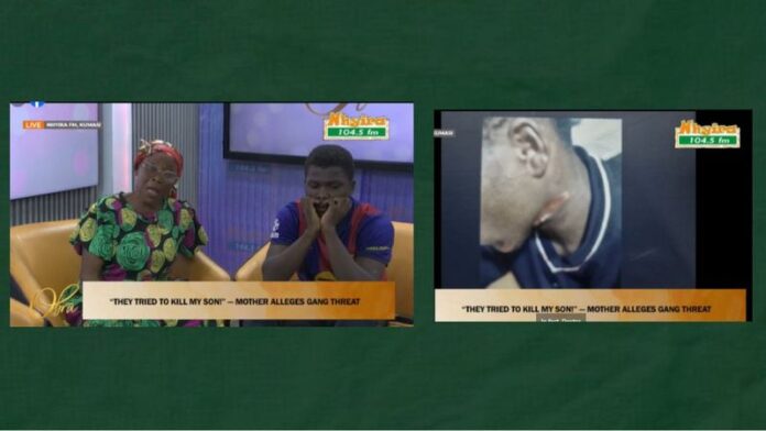 Tears, fear, and a desperate plea for help filled the studios of Nhyira FM’s Obra Show, simulcast on Adom TV, as a worried mother alleged that a group of young men attempted to kill her son simply because he refused to join them.
