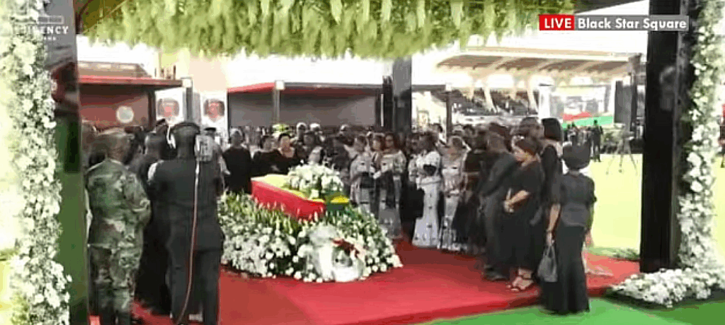 Old students of Achimota School delivered one of the most poignant moments at the state funeral of former First Lady Nana Konadu Agyeman-Rawlings on Thursday, as members of the 1966/67 combined year group gathered around her casket to honour her memory.
