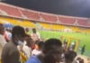 Hearts of Oak supporter spotted eating banku and okro inside stadium...