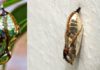 The shiny cocoons of an exotic butterfly that look like gold...